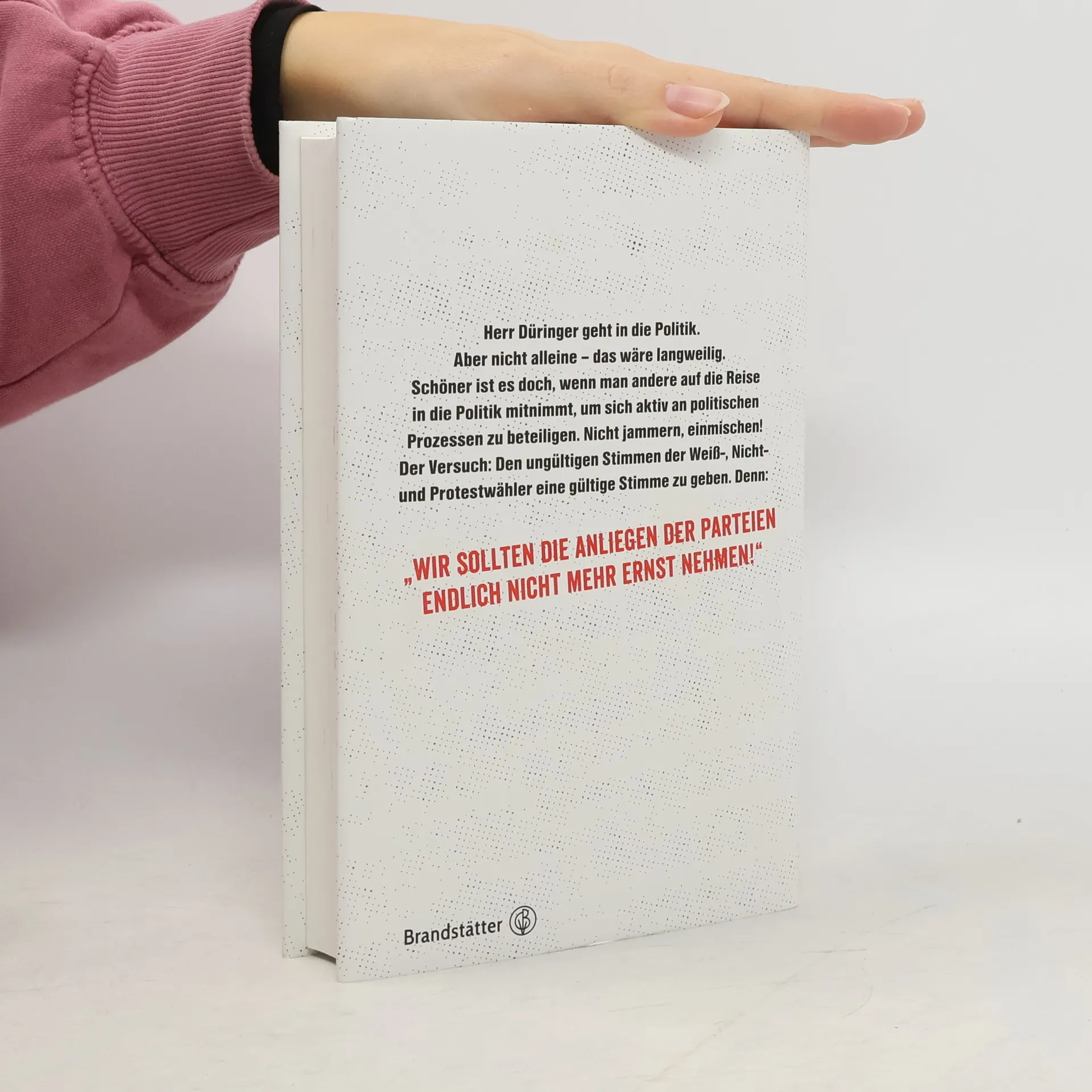Ein Viertel der Wahlberechtigten hat bei der letzten Nationalratswahl den Parteien ihr Vertrauen entzogen. Sie sind dem Wahllokal ferngeblieben oder haben weiß gewählt. Auch Roland Düringer ist eine dieser ungültigen Stimmen und das, obwohl er groß und deutlich „Ich bin eine gültige Stimme“ auf den Stimmzettel gekritzelt hat. Eine Botschaft, die die Adressaten aber niemals erreichte, nämlich all jene Herrschaften – vom kleinen Parteifunktionär bis hin zum Minister, die noch nach jeder Wahl bisher sagten: „Wir müssen die Anliegen der Bürger endlich ernst nehmen.“ Was wurde denn bisher gemacht? Wofür wurdet ihr gewählt? Düringers Botschaft an alle, deren politisches Wirken profit- und nicht inhaltsorientiert ist: „Zieht euch warm an, die nächste Wahl steht vor der Tür, und meine Stimme G! LT.“
