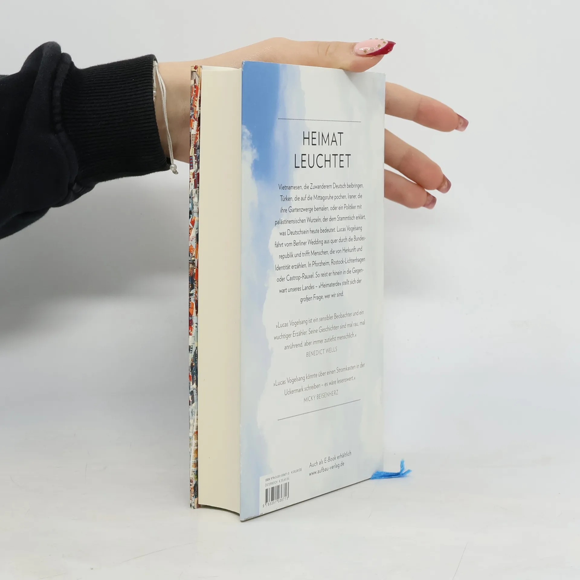 Heimat leuchtet Vietnamesen, die Zuwanderern Deutsch beibringen, Türken, die auf die Mittagsruhe pochen, Iraner, die ihre Gartenzwerge bemalen, oder ein Politiker mit palästinensischen Wurzeln, der dem Stammtisch erklärt, was Deutschsein heute bedeutet. Lucas Vogelsang fährt vom Berliner Wedding aus quer durch die Bundesrepublik und trifft Menschen, die von Herkunft und Identität erzählen. In Pforzheim, Rostock-Lichtenhagen oder Castrop-Rauxel. So reist er hinein in die Gegenwart unseres Landes – „Heimaterde“ stellt sich der großen Frage, wer wir sind. »Lucas Vogelsang ist ein sensibler Beobachter und ein wuchtiger Erzähler. Seine Geschichten sind mal rau, mal anrührend, aber immer zutiefst menschlich.« Benedict Wells »Lucas Vogelsang könnte über einen Stromkasten in der Uckermark schreiben – es wäre lesenswert.« Micky Beisenherz