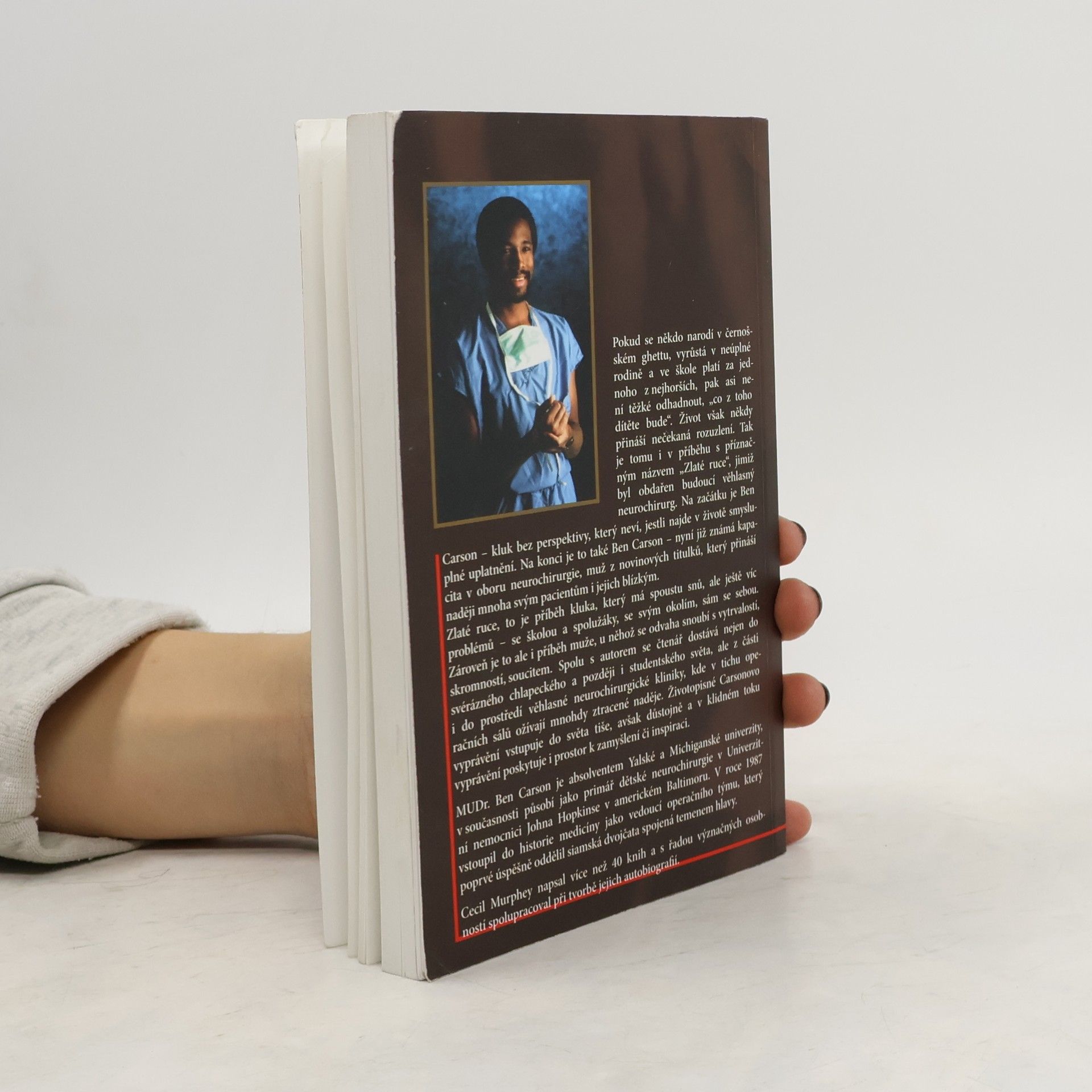 Příběh Bena Carsona. Kniha Zlaté ruce líčí životní osudy kluka, který má spoustu snů, ale ještě víc problémů - se školou a spolužáky, se svým okolím, sám se sebou. Zároveň je to ale i příběh muže, jež se vypracoval z outsidera na přednostu neurochirurgie Fakultní nemocnice Univerzity Johna Hopkinse. Autor v knize vypráví o svém dětství, studiu, ale z části popisuje i prostředí věhlasné kliniky, kde v tichu operačních sálů ožívají mnohdy ztracené naděje.