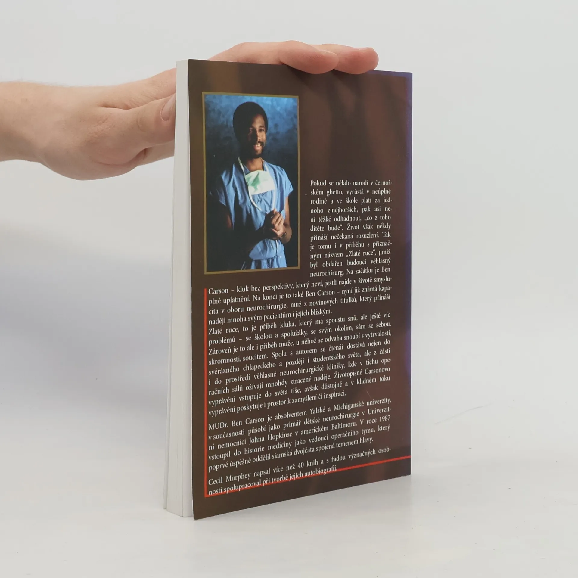 Příběh Bena Carsona. Kniha Zlaté ruce líčí životní osudy kluka, který má spoustu snů, ale ještě víc problémů - se školou a spolužáky, se svým okolím, sám se sebou. Zároveň je to ale i příběh muže, jež se vypracoval z outsidera na přednostu neurochirurgie Fakultní nemocnice Univerzity Johna Hopkinse. Autor v knize vypráví o svém dětství, studiu, ale z části popisuje i prostředí věhlasné kliniky, kde v tichu operačních sálů ožívají mnohdy ztracené naděje.