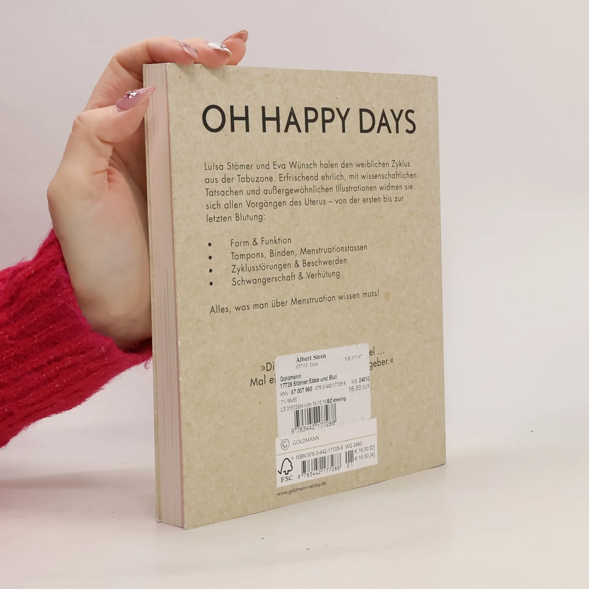 Alles zum Thema Menstruation – offen dargestellt wie im vertrauten Gespräch von Frau zu Frau. Wissenschaftliche Tatsachen und komplizierte Abläufe werden in einfachen Worten beschrieben. Die liebevolle Haltung sowie die ästhetischen Collagen der beiden jungen Autorinnen machen das Buch zu einem wertvollen Geschenk an sich selbst oder die Freundin. Hier wird dem bisher tabuisierten weiblichen Zyklus endlich Aufmerksamkeit geschenkt. Denn es geht schließlich nicht um »eine Schürfwunde am Knie, sondern um nichts Geringeres als die Wiege des Lebens. Und die ist sehenswert.«