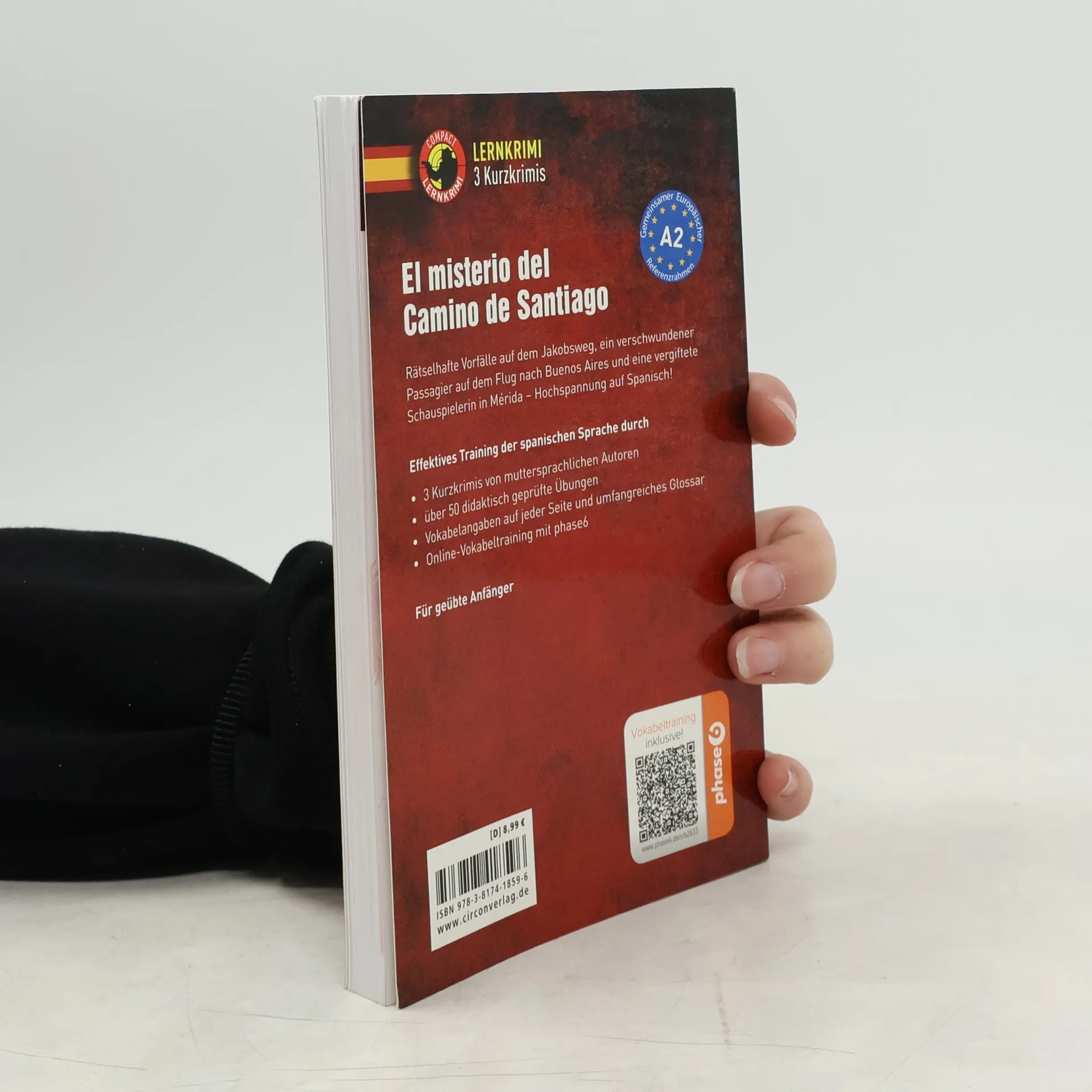 Spannend Sprachen lernen mit den Compact Lernkrimis! Möchten Sie Ihr Spanisch verbessern oder auffrischen, während Sie unterhalten werden? Unsere Compact Lernkrimi Kurzkrimis sind perfekt für Sie. In „El misterio del Camino de Santiago“ erwarten Sie drei spannende Kriminalfälle, speziell für das Niveau A2 von muttersprachlichen Autor*innen verfasst. Mit dem einzigartigen Compact Lernkonzept des Circon Verlags erwerben Sie spielerisch Sprachkompetenzen. Gehen Sie mit unseren Ermittler*innen auf Verbrecherjagd und erweitern Sie Ihren Wortschatz sowie Ihre Grammatikkenntnisse. Thematische Übungen sind geschickt in die Kriminalfälle integriert, um den Lerneffekt zu steigern. Erleben Sie mysteriöse Vorfälle auf dem Jakobsweg, einen verschwundenen Passagier und einen vergifteten Schauspieler. Die Texte sind auf das A2-Niveau abgestimmt, mit über 40 textbezogenen Übungen, die den Lernerfolg fördern. Schwierige Wörter werden auf jeder Seite erklärt, und ein umfangreiches Glossar am Ende ermöglicht das Nachschlagen. Infokästen bieten zusätzliche Informationen zu Sprache und Grammatik. Nutzen Sie die phase6 App, um neue Vokabeln zu trainieren. Die Compact Lernkrimis fördern positive Leseerfahrungen und erleichtern den Spracherwerb, während der Schwierigkeitsgrad mit Ihrem Sprachvermögen steigt. Die Reihe ist für verschiedene Sprachen verfügbar und eignet sich sowohl für den Unterricht als auch für Selbstlerner*innen.