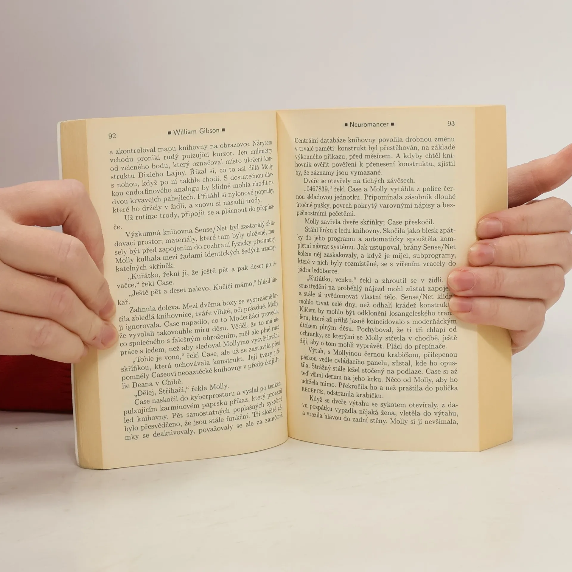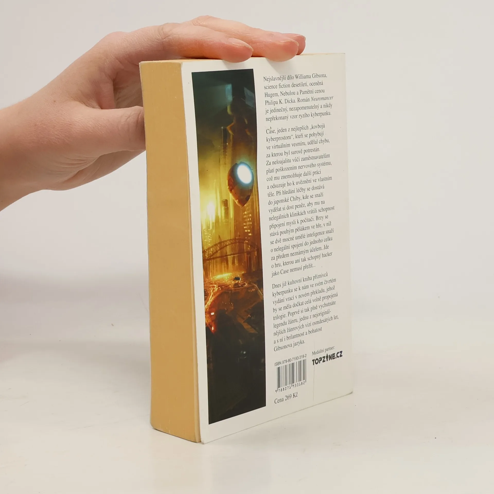 Case, jeden z nejlepších „kovbojů kyberprostoru“, kteří se pohybují ve virtuálním vesmíru, udělal chybu, za kterou byl surově potrestán. Za neloajalitu vůči zaměstnavatelům platí poškozením nervového systému, což mu znemožňuje další práci a odsuzuje ho k uvěznění ve vlastním těle. Při hledání léčby se dostává do japonské Chiby, kde se snaží vydělat si dost peněz, aby mu na nelegálních klinikách vrátili schopnost připojení mysli k počítači. Brzy se stává pouhým pěšákem ve hře, v níž se dvě mocné umělé inteligence snaží o nelegální spojení do jednoho celku za předem neznámým účelem. Jde o hru, kterou ani tak schopný hacker jako Case nemusí přežít... Dnes již kultovní kniha příznivců kyberpunku se k nám ve svém čtvrtém vydání vrací v novém překladu, jehož by se měla dočkat celá volně propojená trilogie. Poprvé si tak plně vychutnáte legendu žánru, jednu z nejoriginálnějších žánrových vizí osmdesátých let, a s ní i brilantnost a bohatost Gibsonova jazyka. Science fiction desetiletí odměněná Hugem, Nebulou a Pamětní cenou Philipa K. Dicka.