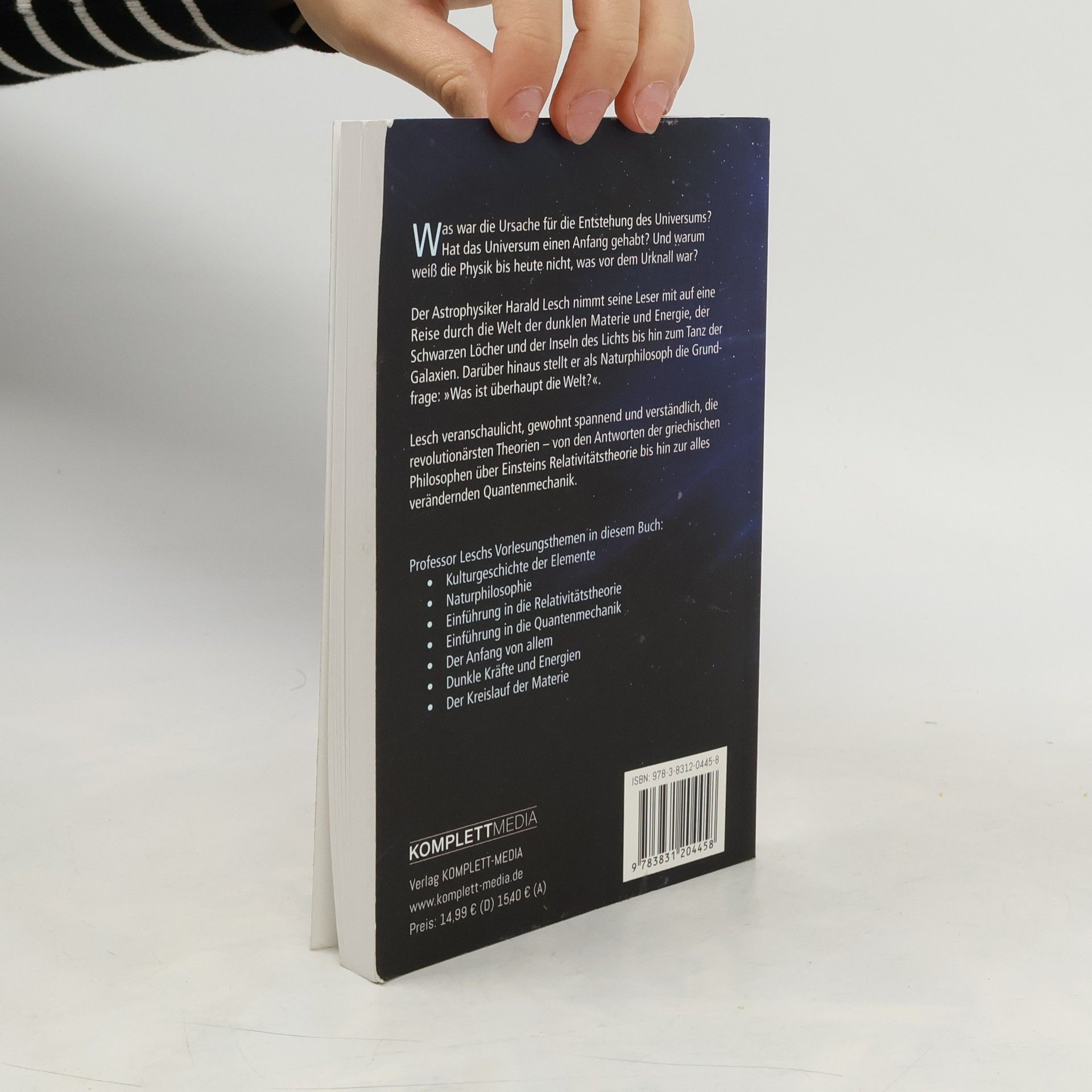 Was war die Ursache für die Entstehung des Universums? Hat das Universum einen Anfang gehabt? Und warum weiß die Physik bis heute nicht, was vor dem Urknall war? Der Astrophysiker Harald Lesch nimmt seine Leser mit auf eine Reise durch die Welt der dunklen Materie und Energie, der Schwarzen Löcher und der Inseln des Lichts bis hin zum Tanz der Galaxien. Darüber hinaus stellt er als Naturphilosoph die Grundfrage: »Was ist überhaupt die Welt?«. Lesch veranschaulicht, gewohnt spannend und verständlich, die revolutionärsten Theorien – von den Antworten der griechischen Philosophen über Einsteins Relativitätstheorie bis hin zur alles verändernden Quantenmechanik. Professor Leschs Vorlesungsthemen in diesem Buch: - Kulturgeschichte der Elemente - Naturphilosophie - Einführung in die Relativitätstheorie - Einführung in die Quantenmechanik - Der Anfang von allem - Dunkle Kräfte und Energien - Der Kreislauf der Materie