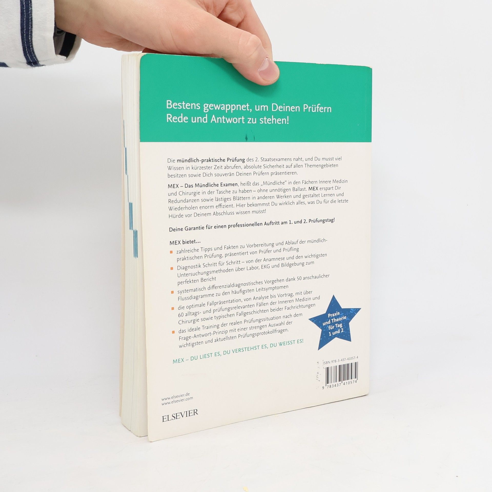 Optimal vorbereitet für die mündlich-praktische Prüfung: MEX Innere Medizin und Chirurgie bietet das nötige praktische Know-how für den 1. Prüfungstag und die Theorie für den 2. Prüfungstag. Dieses Werk garantiert umfassendes Wissen und Sicherheit in allen Themenbereichen, um einen souveränen Auftritt vor den Prüfern im 2. Staatsexamen zu gewährleisten. MEX spart Zeit, vermeidet Redundanzen und macht das Blättern in anderen Quellen überflüssig. Es enthält alles, was für die letzte Hürde vor dem Abschluss erforderlich ist! Die Diagnostik wird Schritt für Schritt erklärt – von der Anamnese über die wichtigsten Untersuchungsmethoden bis hin zu Labor und Bildgebung, inklusive perfekter Berichtserstellung. Verdachts- und Differenzialdiagnosen sind dank 50 anschaulicher Flussdiagramme schnell erfassbar. Die optimale Fallpräsentation umfasst über 60 relevante Fälle der Inneren Medizin und Chirurgie sowie typische Fallgeschichten. Das Training erfolgt nach dem Frage-Antwort-Prinzip mit einer strengen Auswahl der wichtigsten Prüfungsprotokollfragen. Mit zahlreichen Insider-Tipps, Merke- und Klinikkästen, übersichtlichen Tabellen sowie Zusammenfassungen und Abbildungen wird Lernen und Wiederholen effizient gestaltet. MEX – Du liest es, Du verstehst es, Du weißt es.