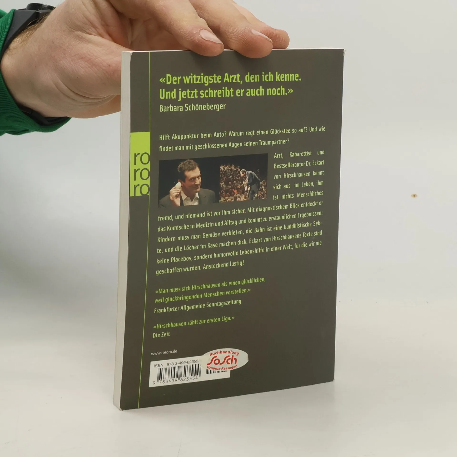 Hilft Akupunktur beim Auto? Warum regt einen Glückstee so auf? Und wie findet man mit geschlossenen Augen seinen Traumpartner?Arzt, Kabarettist und Bestsellerautor Dr. Eckart von Hirschhausen kennt sich aus im Leben, ihm ist nichts Menschliches fremd, und niemand ist vor ihm sicher. Mit diagnostischem Blick entdeckt er das Komische in Medizin und Alltag und kommt zu erstaunlichen Ergebnissen: Kindern muss man Gemüse verbieten, die Bahn ist eine buddhistische Sekte, und die Löcher im Käse machen dick. Eckart von Hirschhausens Texte sind keine Placebos, sondern humorvolle Lebenshilfe in einer Welt, für die wir nie geschaffen wurden. Ansteckend lustig!