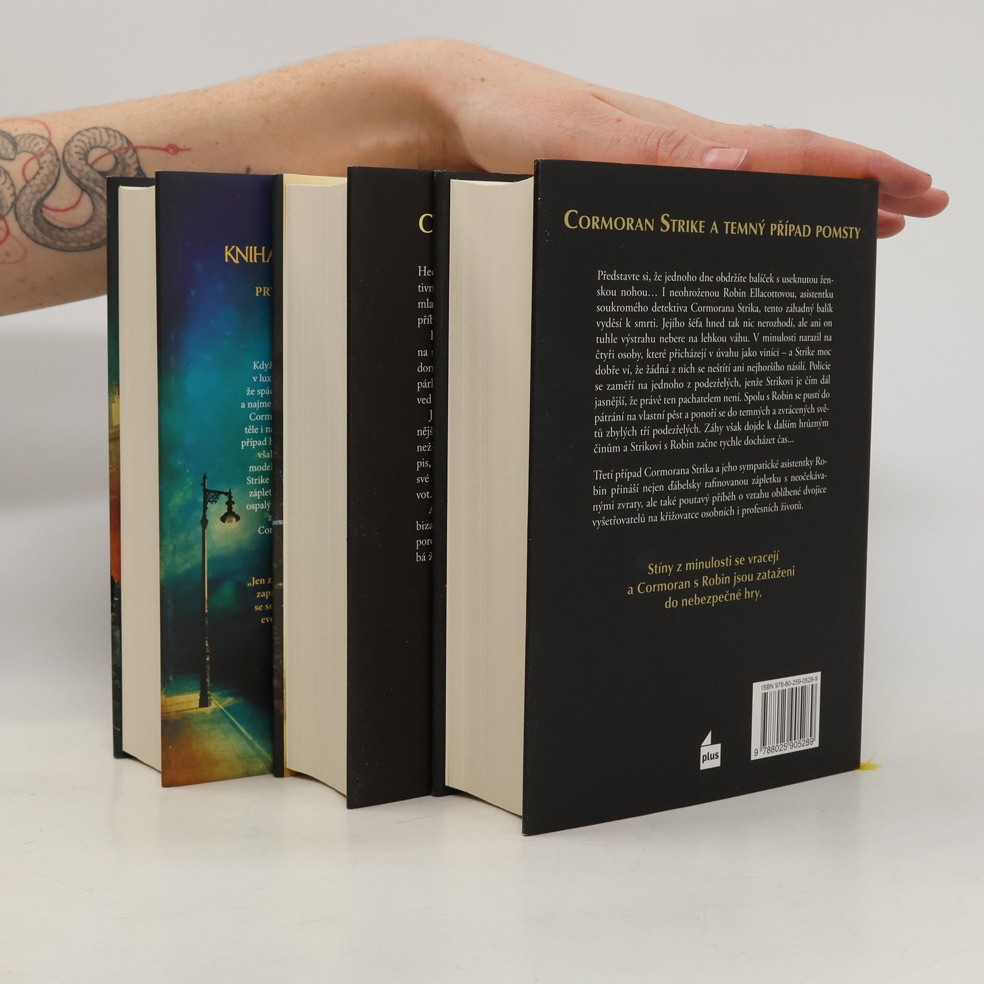 Tento knižní soubor obsahuje tři detektivní romány od J. K. Rowlingové, které se odehrávají ve světě soukromého vyšetřování. Hlavní postavou je Cormoran Strike, bývalý vojenský detektiv, který se snaží vyřešit složité případy, zatímco se potýká s osobními problémy a výzvami. V románu "Volání kukačky" se Strike zabývá smrtí slavné modelky, jejíž úmrtí je zpočátku považováno za sebevraždu, ale Strike odhaluje temné tajemství, které ji obklopuje. "Hedvábník" se zaměřuje na zmizení mladého muže, jehož případ se ukazuje jako mnohem komplikovanější, než se zdálo. V "Ve službách zla" se Strike a jeho asistentka Robin Ellacott ocitají v nebezpečné situaci, když se setkávají s nebezpečným protivníkem z minulosti. Tematicky se romány zabývají otázkami pravdy, morálky a lidských vztahů, přičemž kombinují prvky napětí, psychologického dramatu a sociálního komentáře. Knihy jsou protkány detailním popisem postav a prostředí, což přispívá k celkové atmosféře a hloubce příběhů.