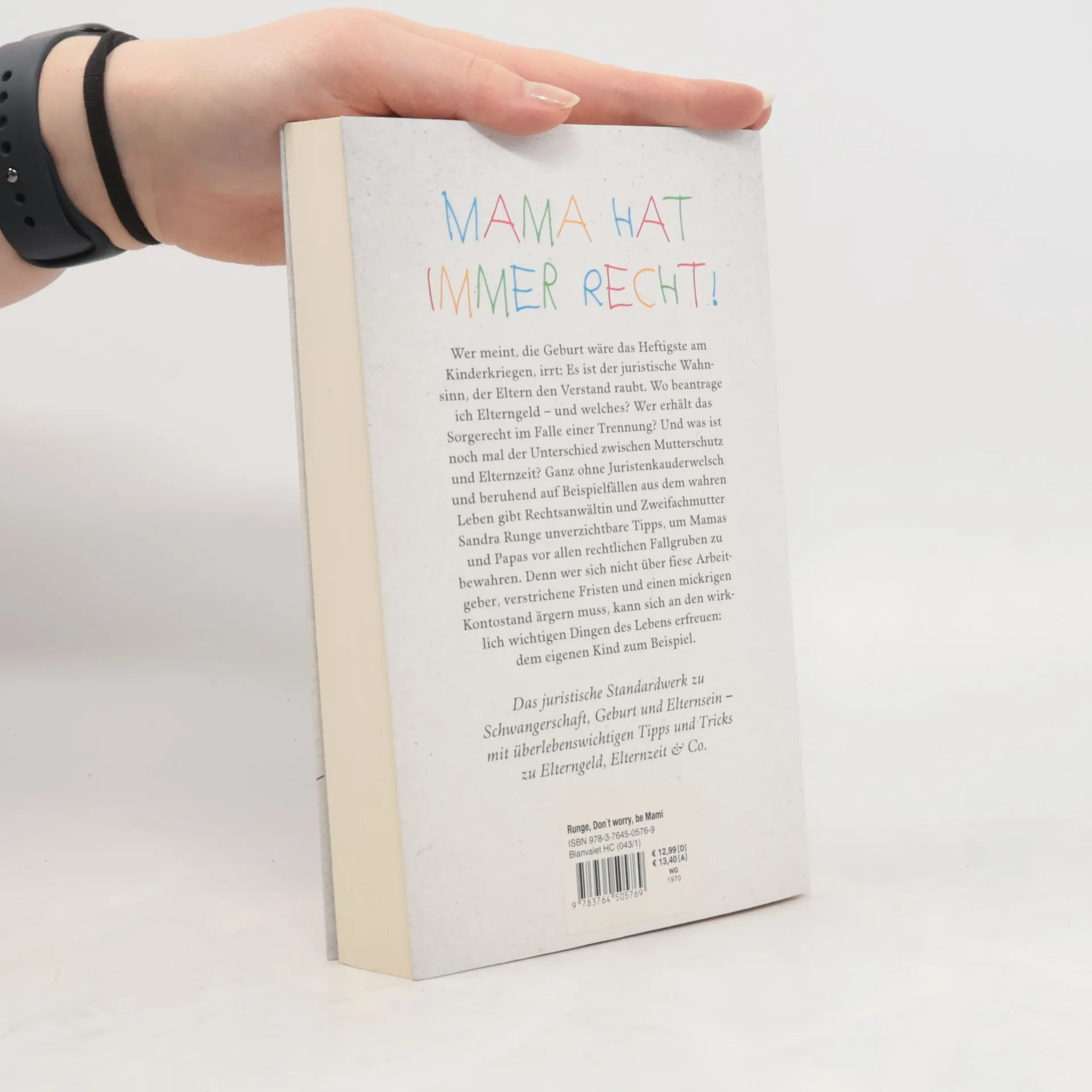 Anhand eigener Erlebnisse und vieler Fallbeispiele erläutert die Autorin die für werdende und junge Eltern wesentlichen rechtlichen Regelungen rund um Schwangerschaft und Geburt. - Rezension : S. Runge ist Juristin und bloggt zum Thema Elternrechte. Nach der Geburt ihres 1. Kindes und einem Jahr Elternzeit erhielt sie zum beruflichen Wiedereinstieg die Kündigung, was sie veranlasste, einen Rechtsratgeber für Eltern zu schreiben, der gleichzeitig fundiert und verständlich die für Mütter und Väter relevanten juristischen Themen mit Schwerpunkt auf Schwangerschaft und Geburt aufbereitet. Anhand ihrer eigenen Geschichte und Fallbeispiele erläutert Runge die rechtlichen Regelungen zum Thema Mutterschutz, Elternzeit, Kindergeld, Unterhalt, Haftpflicht, Vormundschaft u.v.m. Die Mischung aus persönlicher Geschichte und Rechtsratgeber (Tipps sind farblich hervorgehoben) funktioniert wider Erwarten hervorragend, was auch am detaillierten Stichwortverzeichnis liegt. Mit Checklisten, Mustertexten und weiterführenden Internetadressen. Der locker geschriebene Elternratgeber (Du-Anrede) kann vor allem für werdende und junge Eltern eine echte Stütze sein. "Was Eltern wissen sollten" umfasst einen deutlich breiteren Rahmen, H. Marburger ist vergleichsweise trocken. Empfohlen! (2)