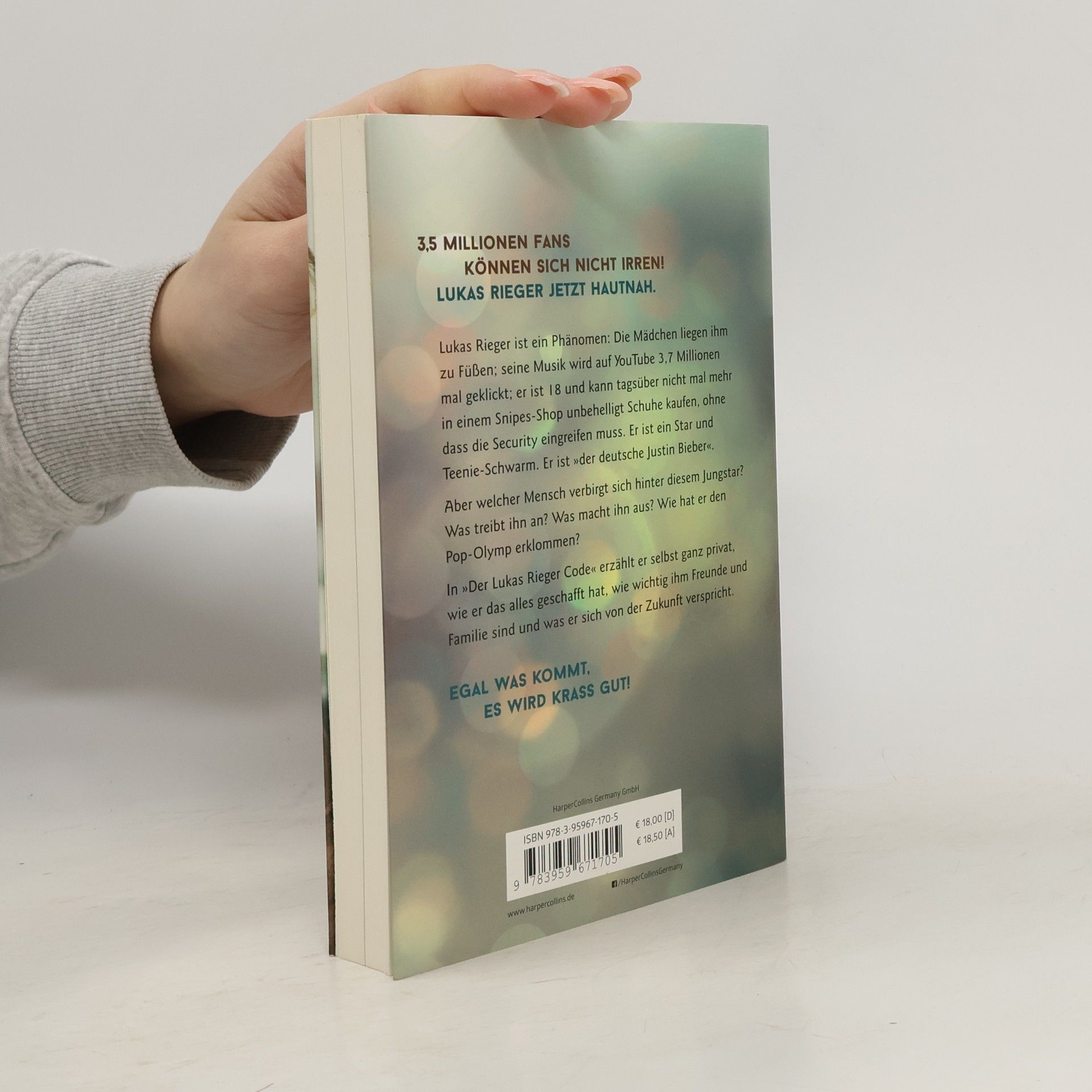 Lukas Rieger ist ein Phänomen: Die Mädchen liegen ihm zu Füßen; seine Musik wird auf YouTube 3,7 Millionen mal geklickt; er ist 18 und kann tagsüber nicht mal mehr in einem Snipes-Shop unbehelligt Schuhe kaufen, ohne dass die Security eingreifen muss. Er ist ein Star und Teenie-Schwarm. Er ist „der deutsche Justin Bieber“. Aber welcher Mensch verbirgt sich hinter diesem Jungstar? Was treibt ihn an? Was macht ihn aus? Wie hat er den Pop-Olymp erklommen? In „Der Lukas Rieger Code“ erzählt er selbst ganz privat, wie er das alles geschafft hat, wie wichtig ihm Freunde und Familie sind und was er sich von der Zukunft verspricht.