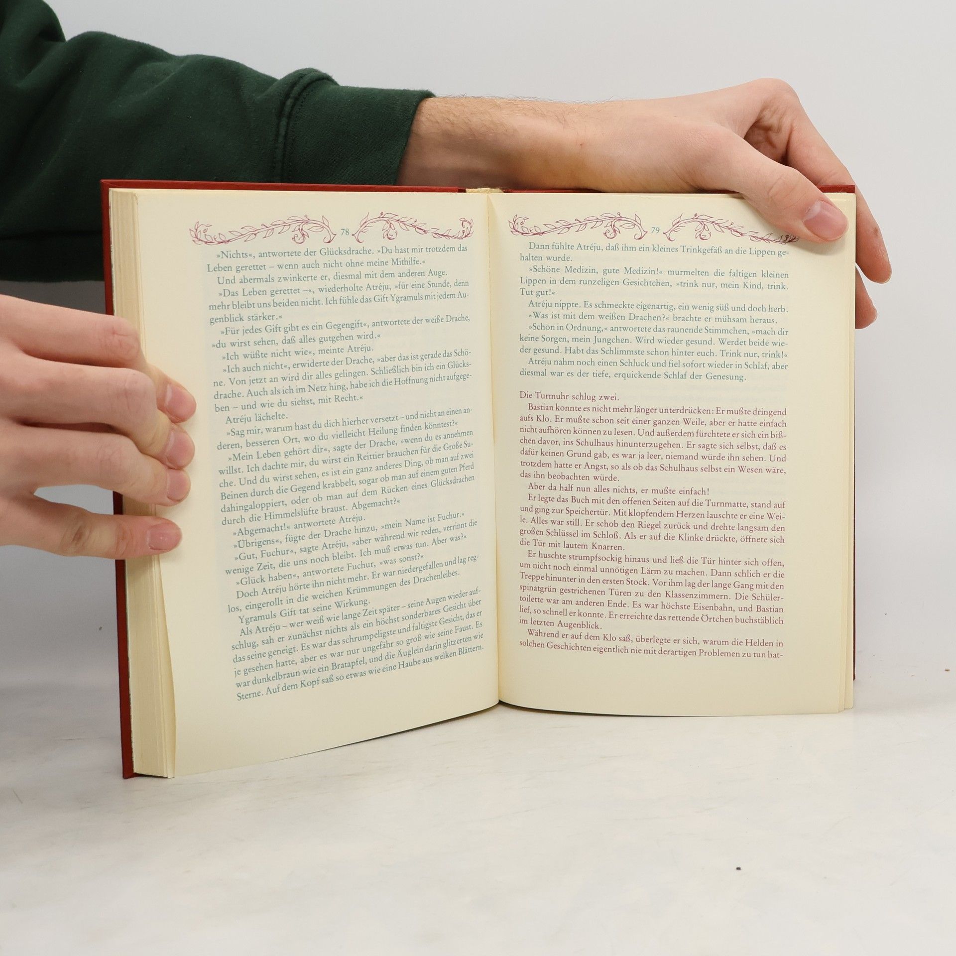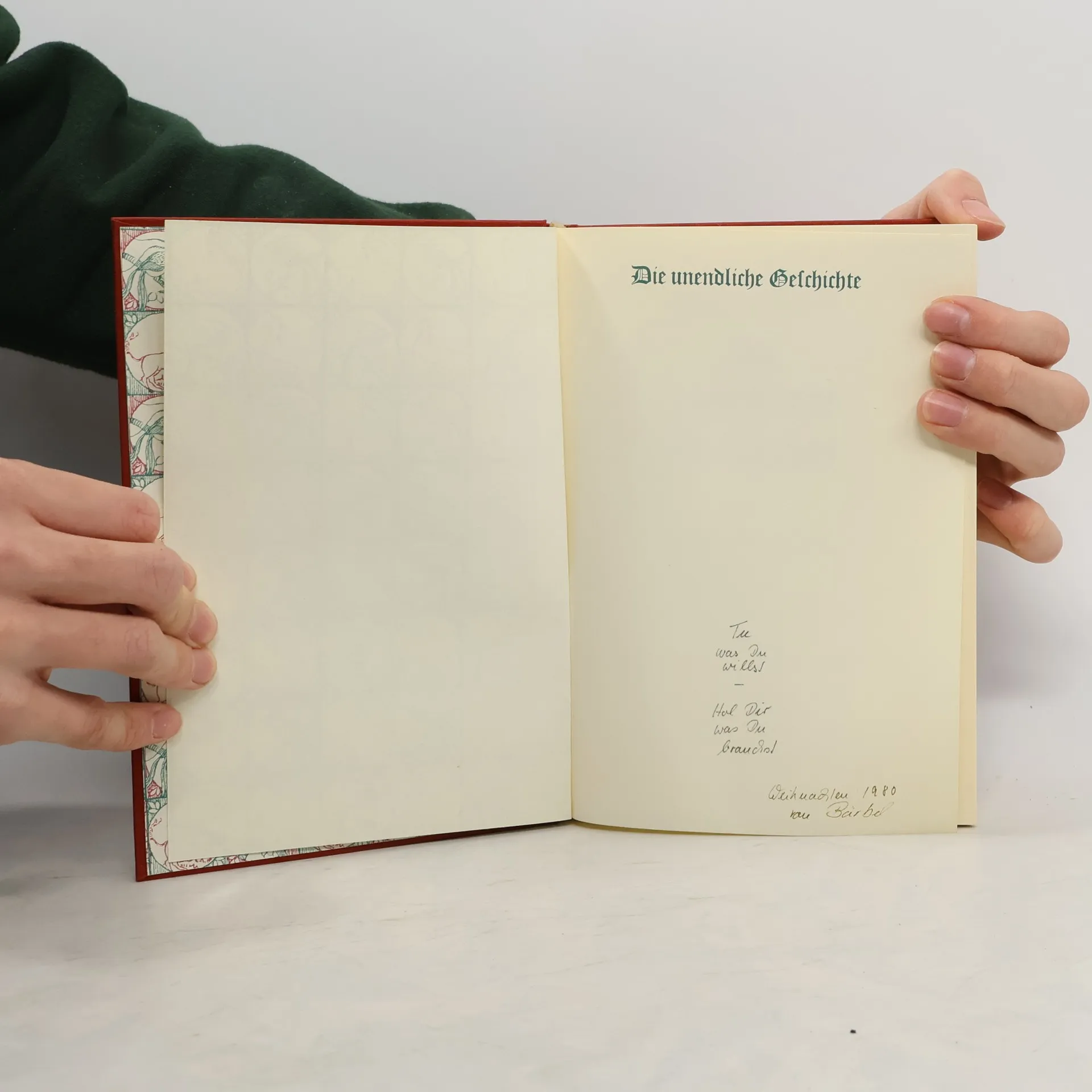 Der zehnjährige dickliche Bastian Balthasar Bux flüchtet sich vor den Nachstellungen der Schulkameraden in ein Antiquariat, wo ihn der Beginn eines Buches fasziniert, dessen Titel immer währendes Träumen verspricht. Bastian entwendet Die unendliche Geschichte und verliert sich auf dem Schulspeicher immer mehr in deren Lektüre: Die zunehmende Identifikation mit dem Helden Atréju ermöglicht ihm den Eintritt in die »Anderswelt«, in der er zum entscheidenden Protagonisten wird. Als Grenzgänger aus der Menschenwelt kommt ihm die Aufgabe zu, das vom »Nichts« bedrohte Phantásien und mit ihm dessen sterbenskranke »Kindliche Kaiserin« zu retten. Nach zahllosen Abenteuern auf dem Weg zu sich selbst, der von fantastischen Gestalten und mystischen Erkenntnissen gesäumt ist, löst Bastian mit Hilfe des »Wahren Willens« nicht nur seine Aufgabe, ihm gelingt auch die Rückkehr in die Realität, die er nun bewältigen kann.