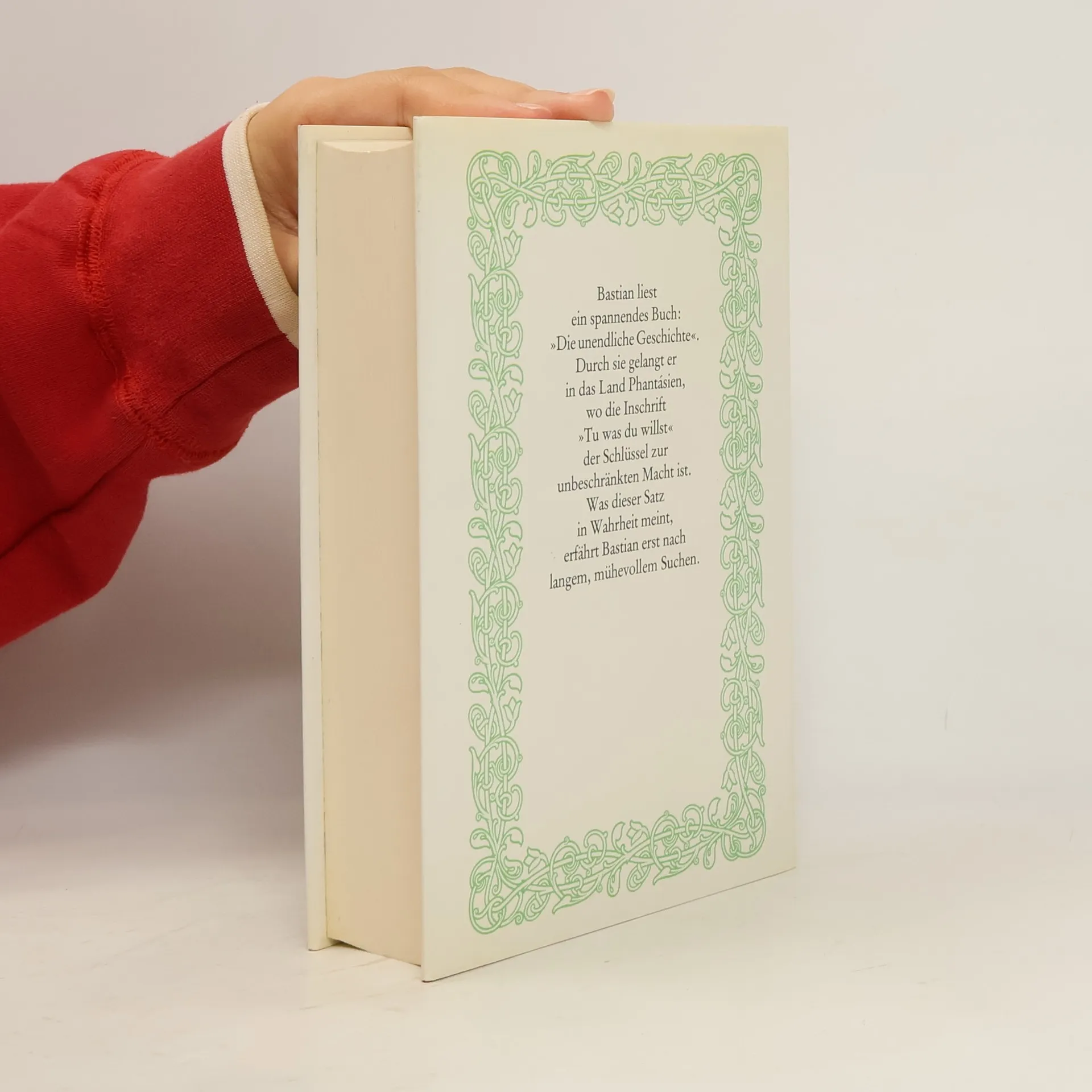 Der zehnjährige dickliche Bastian Balthasar Bux flüchtet sich vor den Nachstellungen der Schulkameraden in ein Antiquariat, wo ihn der Beginn eines Buches fasziniert, dessen Titel immer währendes Träumen verspricht. Bastian entwendet Die unendliche Geschichte und verliert sich auf dem Schulspeicher immer mehr in deren Lektüre: Die zunehmende Identifikation mit dem Helden Atréju ermöglicht ihm den Eintritt in die »Anderswelt«, in der er zum entscheidenden Protagonisten wird. Als Grenzgänger aus der Menschenwelt kommt ihm die Aufgabe zu, das vom »Nichts« bedrohte Phantásien und mit ihm dessen sterbenskranke »Kindliche Kaiserin« zu retten. Nach zahllosen Abenteuern auf dem Weg zu sich selbst, der von fantastischen Gestalten und mystischen Erkenntnissen gesäumt ist, löst Bastian mit Hilfe des »Wahren Willens« nicht nur seine Aufgabe, ihm gelingt auch die Rückkehr in die Realität, die er nun bewältigen kann.