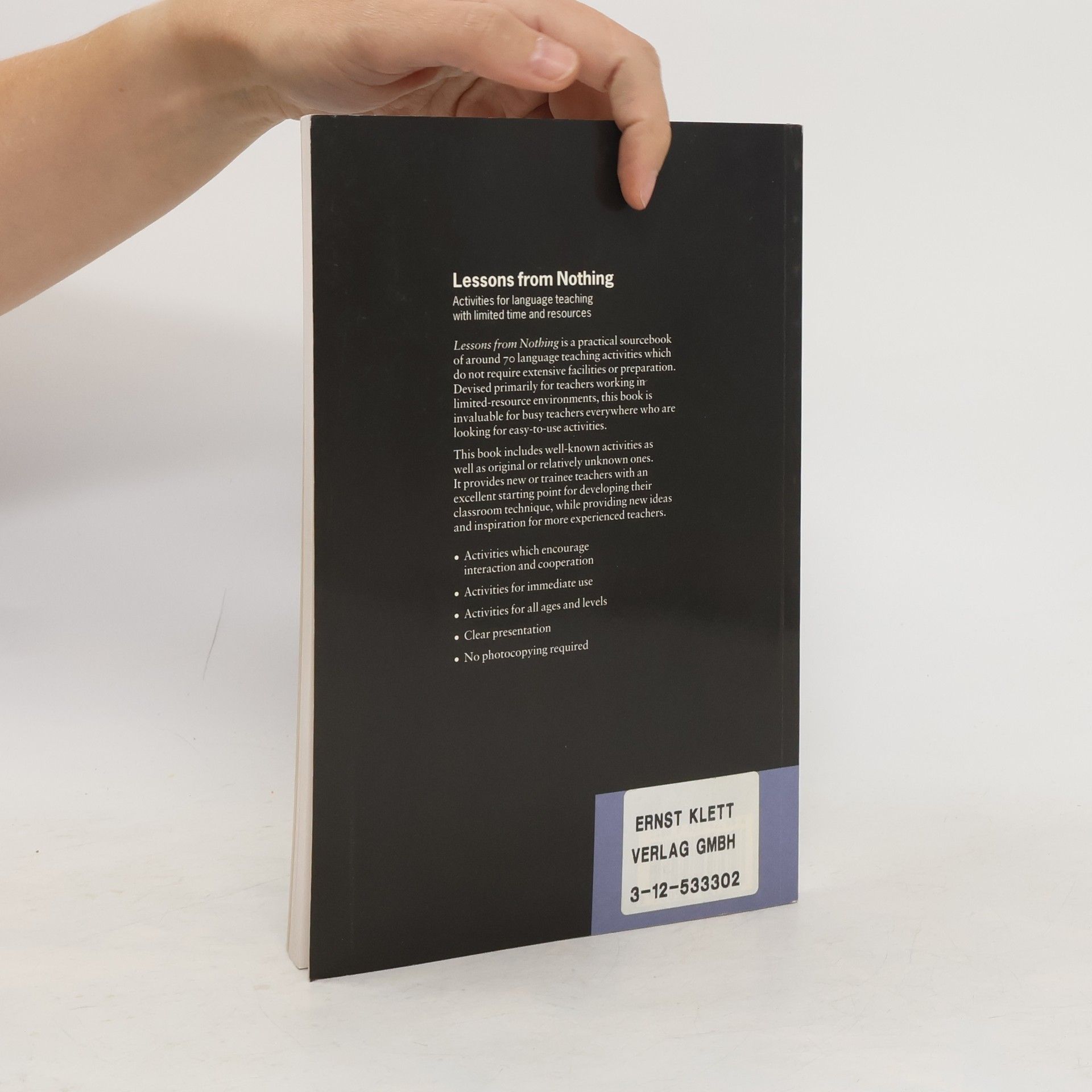 Lessons from Nothing is an invaluable resource for busy teachers everywhere who are looking for easy-to-use activities that do not require extensive facilities or preparation. It is a practical source of around 70 language teaching activities that encourage interaction and co-operation in the classroom. Special features: * activities for immediate use * activities for all ages and levels * clear presentation * no photocopying required.