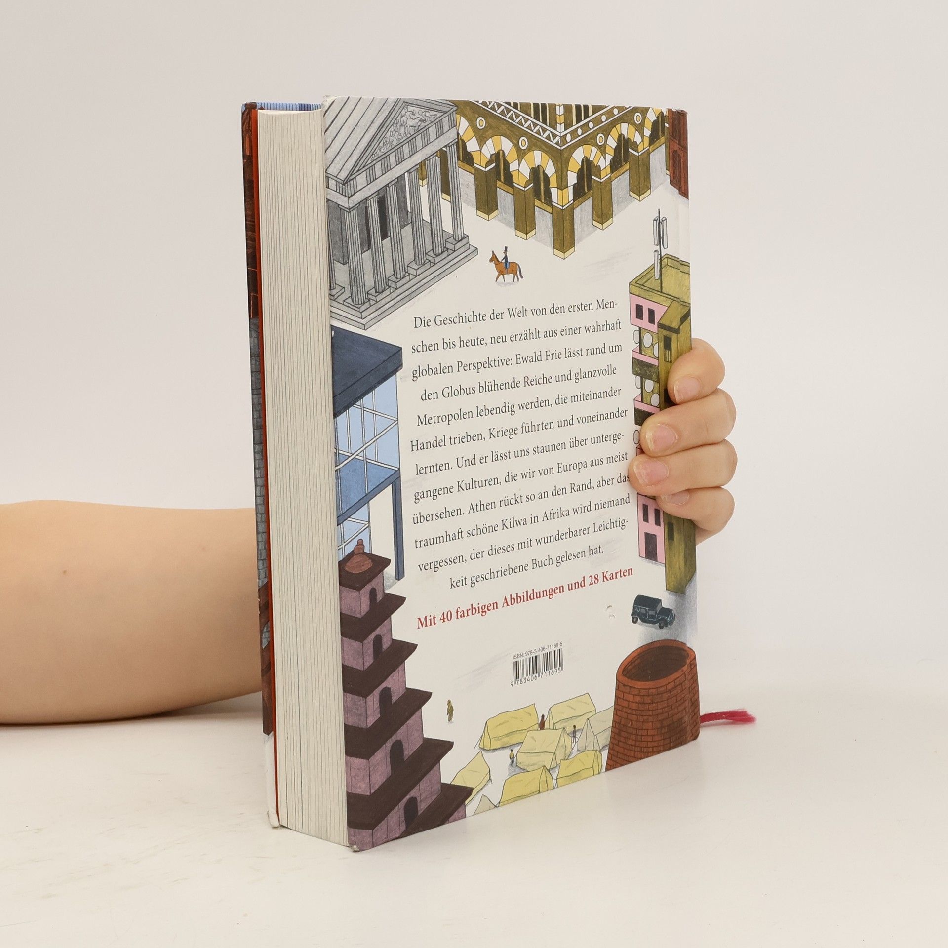 Ewald Frie erzählt die Geschichte der Welt erstmals ganz voraussetzungslos aus einer wahrhaft globalen Perspektive. Athen rückt so an den Rand, aber das traumhaft schöne Kilwa in Afrika wird niemand vergessen, der dieses mit wunderbarer Leichtigkeit geschriebene Buch gelesen hat. Die Geschichte der Welt wird bis heute von Europa aus erzählt. Höchste Zeit für einen frischen Blick: Australien wurde vom Homo sapiens früher besiedelt als Europa. Menschen fuhren Tausende Kilometer über den offenen Pazifik, als die Römer noch ängstlich an der Küste entlangsegelten. Die Pyramiden und Städte Amerikas können es mit Babylon und Ägypten aufnehmen. Und während Westeuropa in der Neuzeit Glaubenskriege führte, erstreckte sich ein multikultureller Handelsraum von Ungarn bis Südindien. Aber natürlich geht es auch um die Barbaren im Abendland: Ewald Frie erzählt von ihren Entdeckungen und Eroberungen, ihren Revolutionen und Kriegen, die die Welt verändert haben. Seitdem wird unser Planet zu einer globalen Megacity, in der sich die Reichen von den Armen abschotten und trotzdem alle miteinander vernetzt sind. Und die Megacitys dieser Welt liegen heute da, wo es schon vor Jahrtausenden die größten Städte gab: außerhalb Europas. (Quelle: www.buchhandel.de).