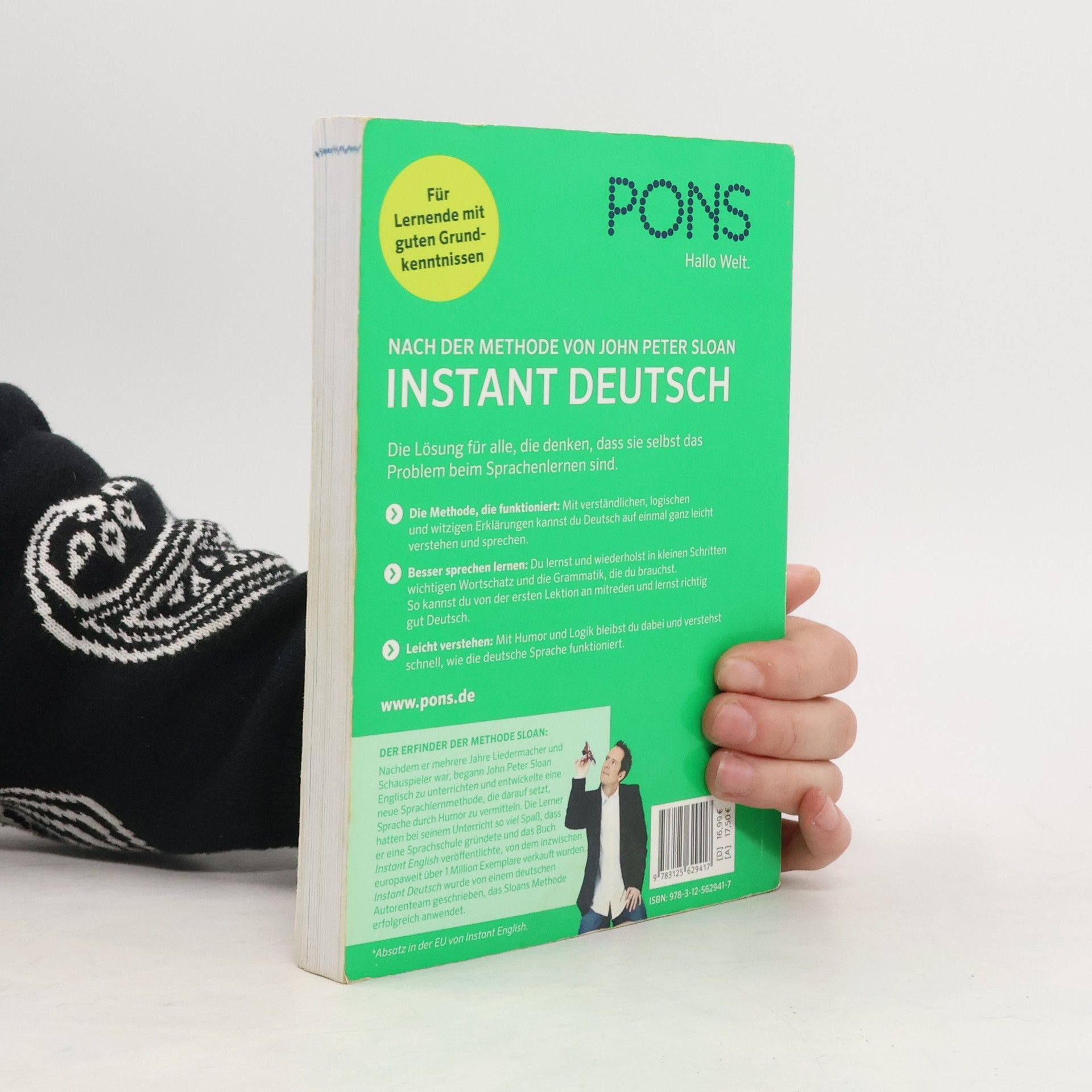Die Lösung für alle, die denken, dass sie selbst das Problem beim Sprachenlernen sind. Die Methode, die funktioniert : Mit verständlichen, logischen und witzigen Erklärungen kannst du Deutsch auf einmal ganz leicht verstehen und sprechen. Besser sprechen lernen : Du lernst und wiederholst in kleinen Schritten wichtigen Wortschatz und die Grammatik, die du brauchst. So kannst du von der ersten Lektion an mitreden und lernst richtig gut Deutsch. Leicht verstehen: Mit Humor und Logik bleibst du dabei und verstehst schnell, wie die deutsche Sprache funktioniert. Der Erfinder der Methode Sloan: Nachdem er mehrere Jahre Liedermacher und Schauspieler war, begann John Peter Sloan Englisch zu unterrichten und entwickelte eine neue Sprachlernmethode, die darauf setzt, Sprache durch Humor zu vermitteln. Die Lerner hatten bei seinem Unterricht so viel Spaß, dass er eine Sprachschule gründete und das Buch Instant English veröffentlichte, von dem inzwischen europaweit über 1 Million Exemplare verkauft wurden. Instant Deutsch wurde von einem deutschen Autorenteam geschrieben, das Sloans Methode erfolgreich anwendet.