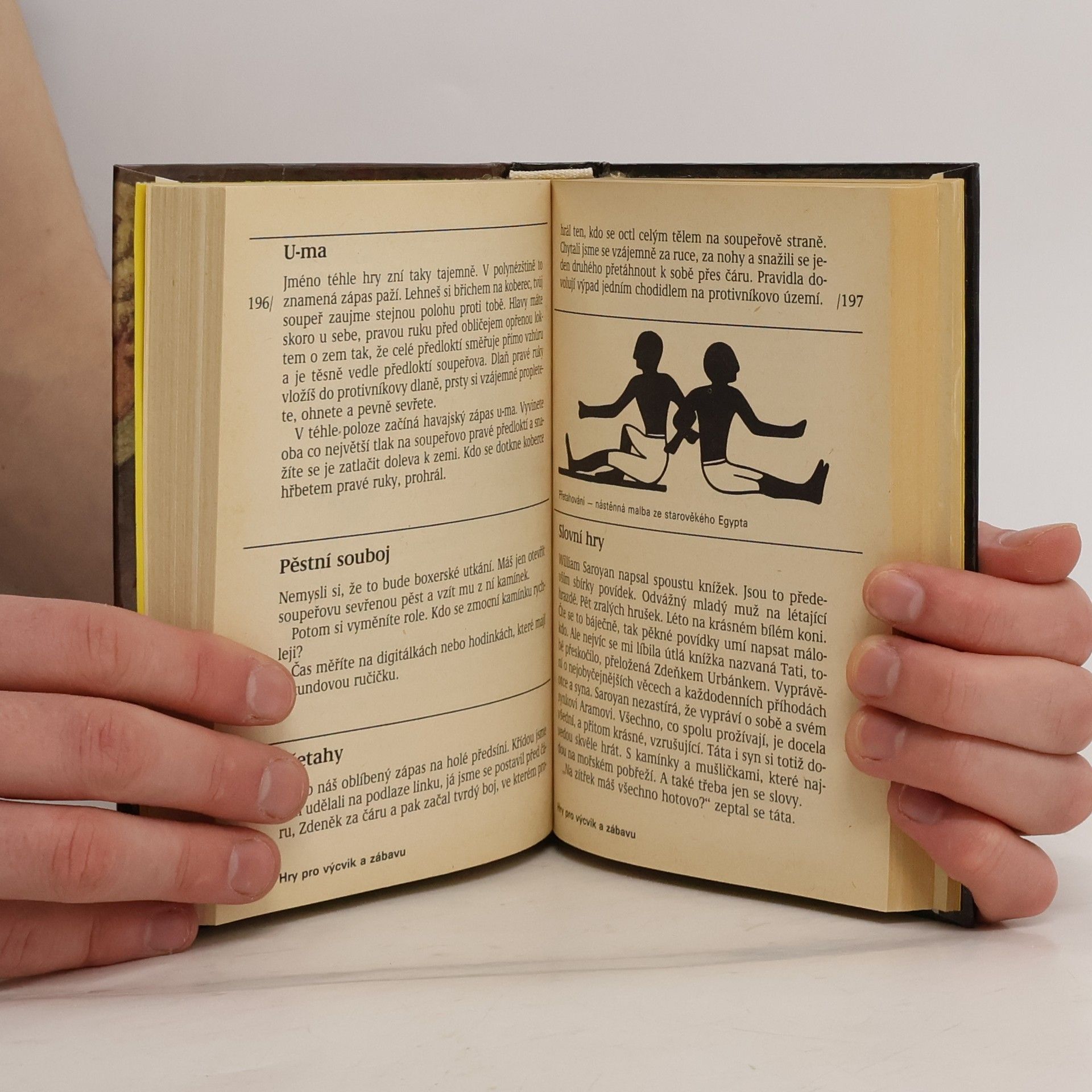 Kniha rozdělená do dvou dílů - hry doma a hry v přírodě. Popisuje zachovalé a známé hry historie, hry s papírem, deskové hry, s kostkami, domina, karty, na ulici, na plácku a hřišti, v přírodě a na chalupě.