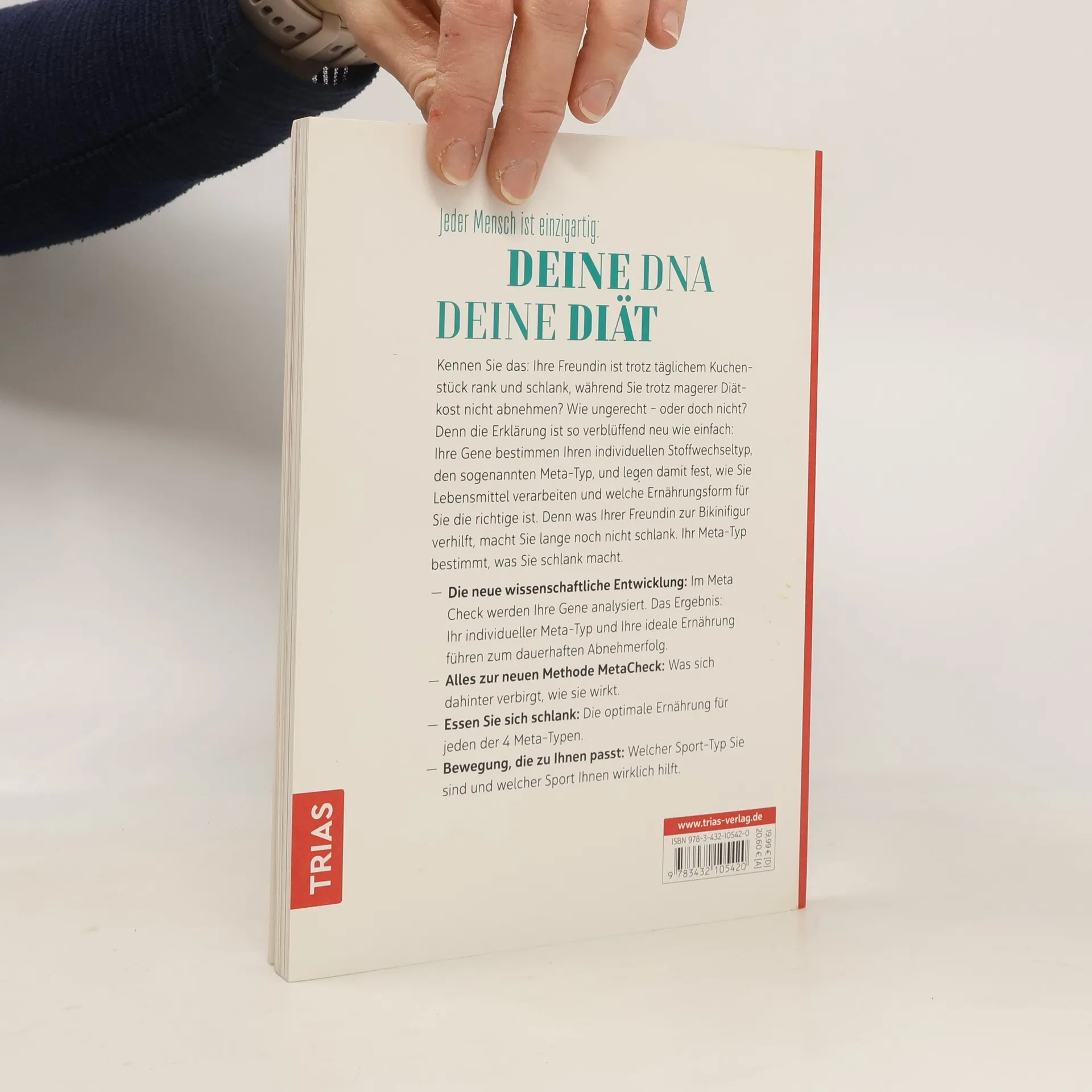 Jeder Mensch ist Ihre DNA. Ihre Diät.Kennen Sie Ihre Freundin ist trotz täglichem Kuchenstück rank und schlank, während Sie trotz magerer Diätkost nicht abnehmen? Wie ungerecht - oder doch nicht? Denn die Erklärung ist so verblüffend neu wie Ihre Gene bestimmen Ihren ganz individuellen Stoffwechseltyp und legen damit fest, wie Sie Lebensmittel verarbeiten und welche Ernährungsform für Sie die richtige ist. Denn was Ihrer Freundin zur Bikinfigur verhilft, macht Sie lange noch nicht schlank.- Die neue wissenschaftliche Im Meta-Check werden ihre Gene analysiert. Das Ihr individueller Meta-Typ, der Ihnen sagt, wie ihre ideale Ernährung aussehen sollte - die endlich zum dauerhaften Abnehmerfolg führt.- Alles zur neuen Methode Was sich dahinter verbirgt, wie sie wirkt.- Essen Sie sich Die optimale Ernährung für jeden der 4 Meta-Typen.- Bewegung, die zu Ihnen Welcher Sport wem wirklich hilft.