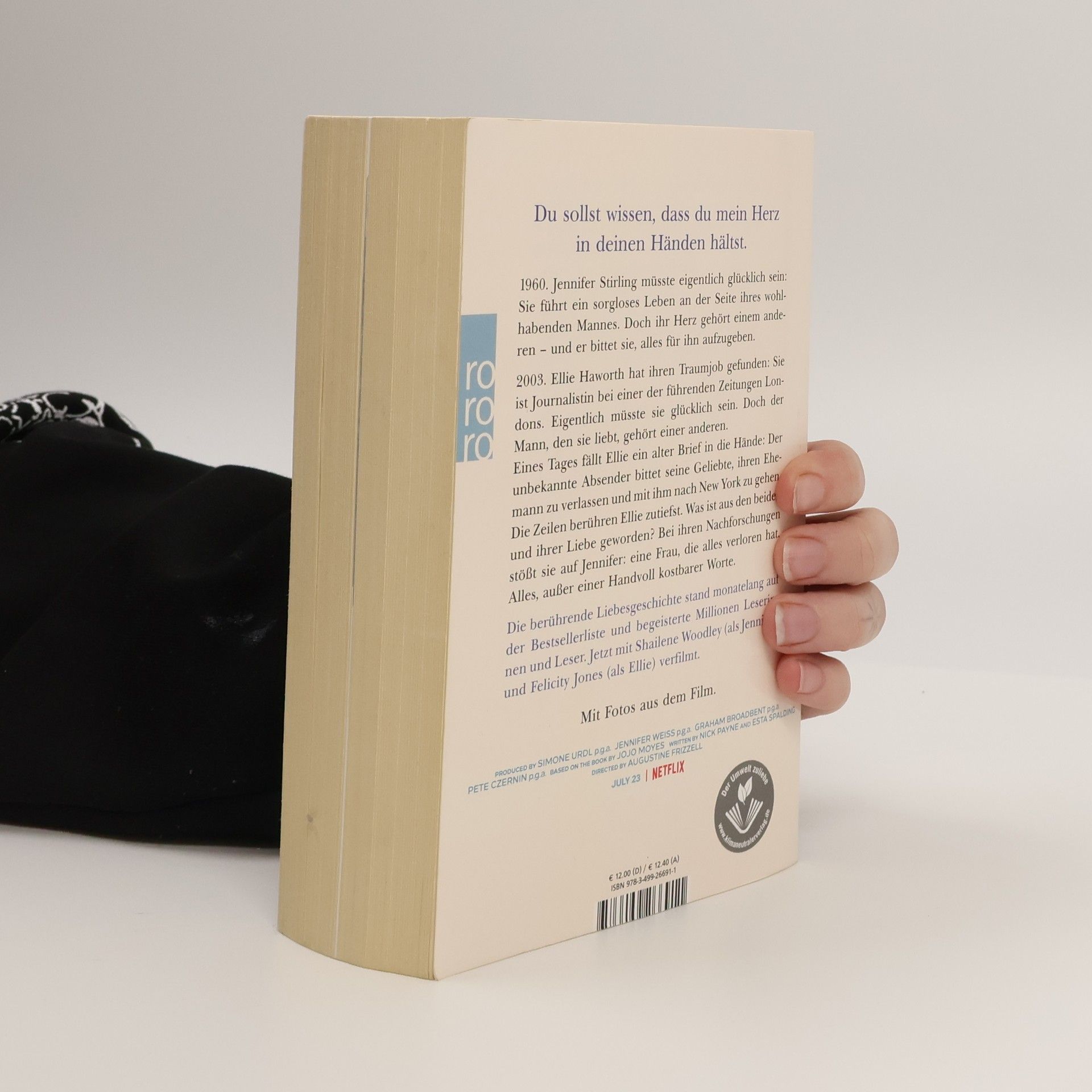 Eine dramatische Liebesgeschichte aus der Feder von Bestsellerautorin Jojo Moyes über die Leidenschaft, die Worte entfachen können, und die Kraft einer Liebe, die Jahrzehnte und Schicksalsschläge überdauert. Prominent verfilmt - mit Shailene Woodley, Felicity Jones und Callum Turner. 1960. Jennifer Stirling müsste eigentlich glücklich sein: Sie führt ein sorgloses Leben an der Seite ihres wohlhabenden Mannes. Doch ihr Herz gehört einem anderen – und er bittet sie, alles für ihn aufzugeben. 2003. Ellie Haworth hat ihren Traumjob gefunden: Sie ist Journalistin bei einer der führenden Zeitungen Londons. Eigentlich müsste sie glücklich sein. Doch der Mann, den sie liebt, gehört einer anderen. Eines Tages fällt Ellie ein jahrzehntealter Liebesbrief in die Hände: In leidenschaftlichen Worten bittet der unbekannte Absender seine Geliebte, ihren Ehemann zu verlassen und mit ihm nach New York zu gehen. Als Ellie diese Zeilen liest, ist sie erschüttert. Was ist aus den beiden und ihrer Liebe geworden? Sie stellt Nachforschungen an und stößt auf Jennifer: eine Frau, die alles verloren hat. Alles, außer einer Handvoll kostbarer Worte. Mit Fotos aus dem Film im Innenteil.
