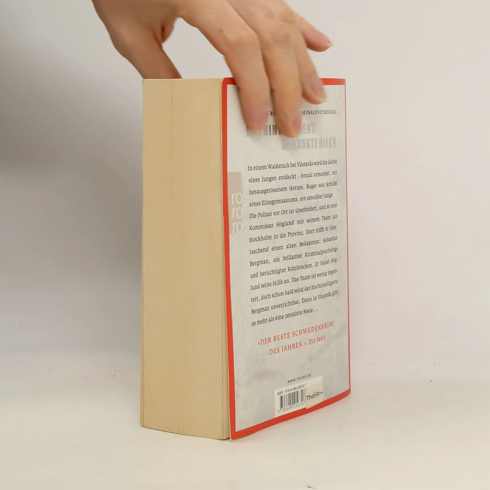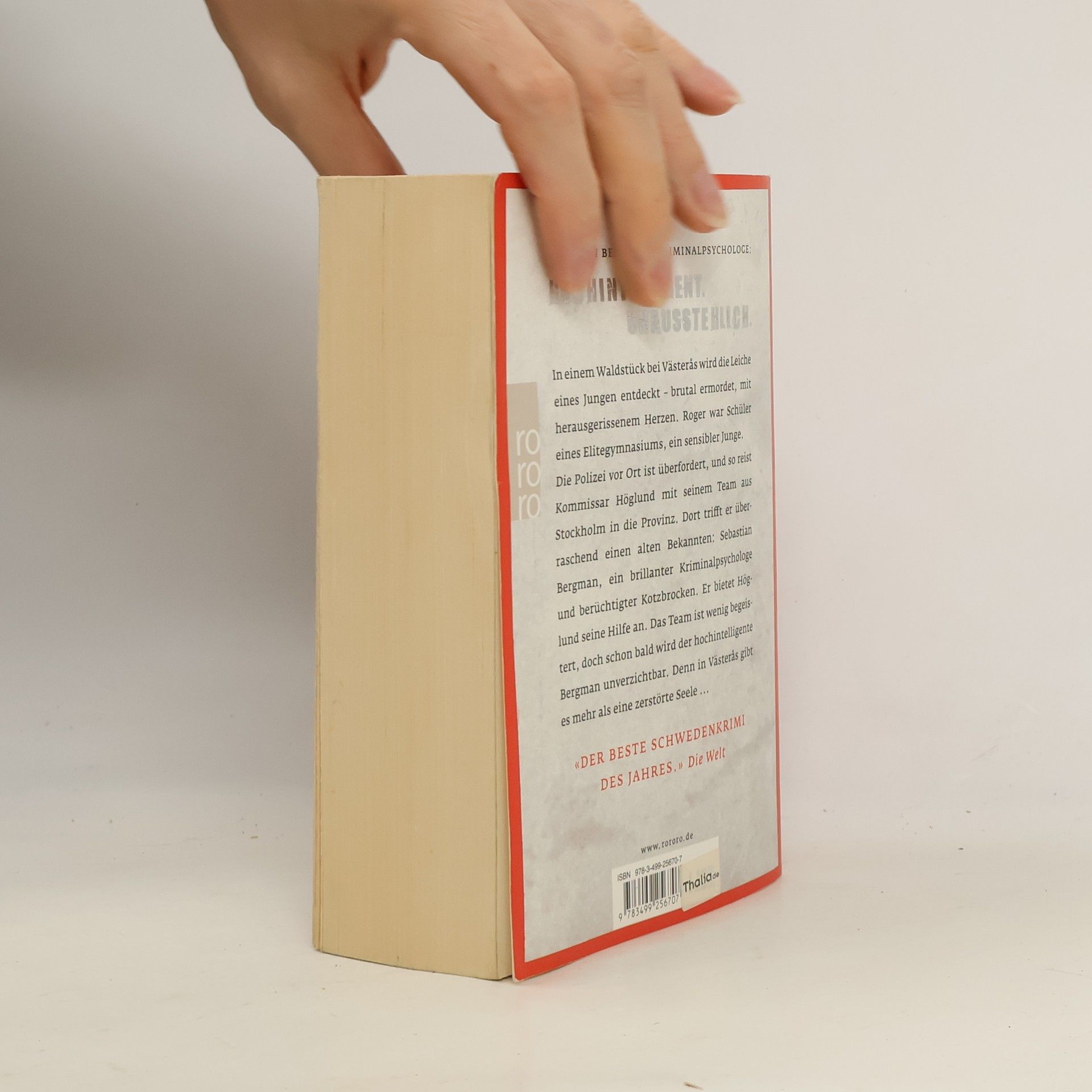 Sebastian Bergman, Kriminalpsychologe: Hochintelligent. Unausstehlich. In einem Waldstück bei Västerås wird die Leiche eines Jungen entdeckt – brutal ermordet, mit herausgerissenem Herzen. Roger war Schüler eines Elitegymnasiums, ein sensibler Junge. Die Polizei vor Ort ist überfordert, und so reist Kommissar Höglund mit seinem Team aus Stockholm in die Provinz. Dort trifft er überraschend einen alten Bekannten: Sebastian Bergman, ein brillanter Kriminalpsychologe und berüchtigter Kotzbrocken. Er bietet Höglund seine Hilfe an. Das Team ist wenig begeistert, doch schon bald wird der hochintelligente Bergman unverzichtbar. Denn in Västerås gibt es mehr als eine zerstörte Seele ... Sebastian Bergmans erster Fall