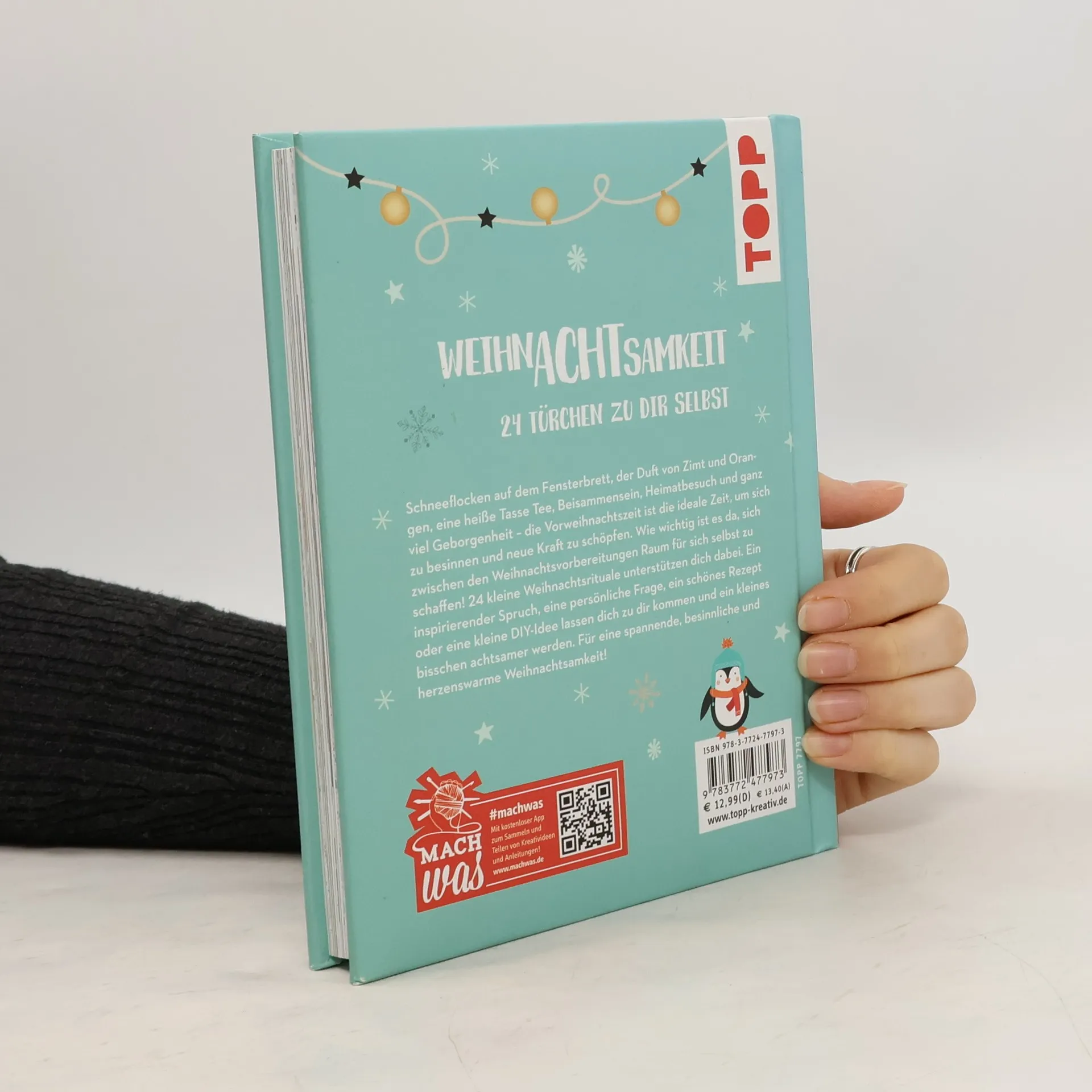 Der erste Adventskalender für mich! Schneeflocken auf dem Fensterbrett, der Duft von Zimt und Orangen, eine heiße Tasse Tee. Beisammensein, Heimatbesuch und ganz viel Nostalgie und Geborgenheit – die Vorweihnachtszeit ist die schönste und trubeligste Zeit des Jahres, und dabei so perfekt, um sich zu besinnen und neue Kraft zu schöpfen. Dieses Jahr nehme ich mir dafür bewusst Zeit: 24 kreative Weihnachtsrituale lassen mich zu mir kommen und ein kleines bisschen achtsamer werden. Basteln, Entspannen, Backen, Schenken, Dekorieren – für meine ganz persönliche, spannende, besinnliche und herzenwärmende Weihnachtsamkeit!