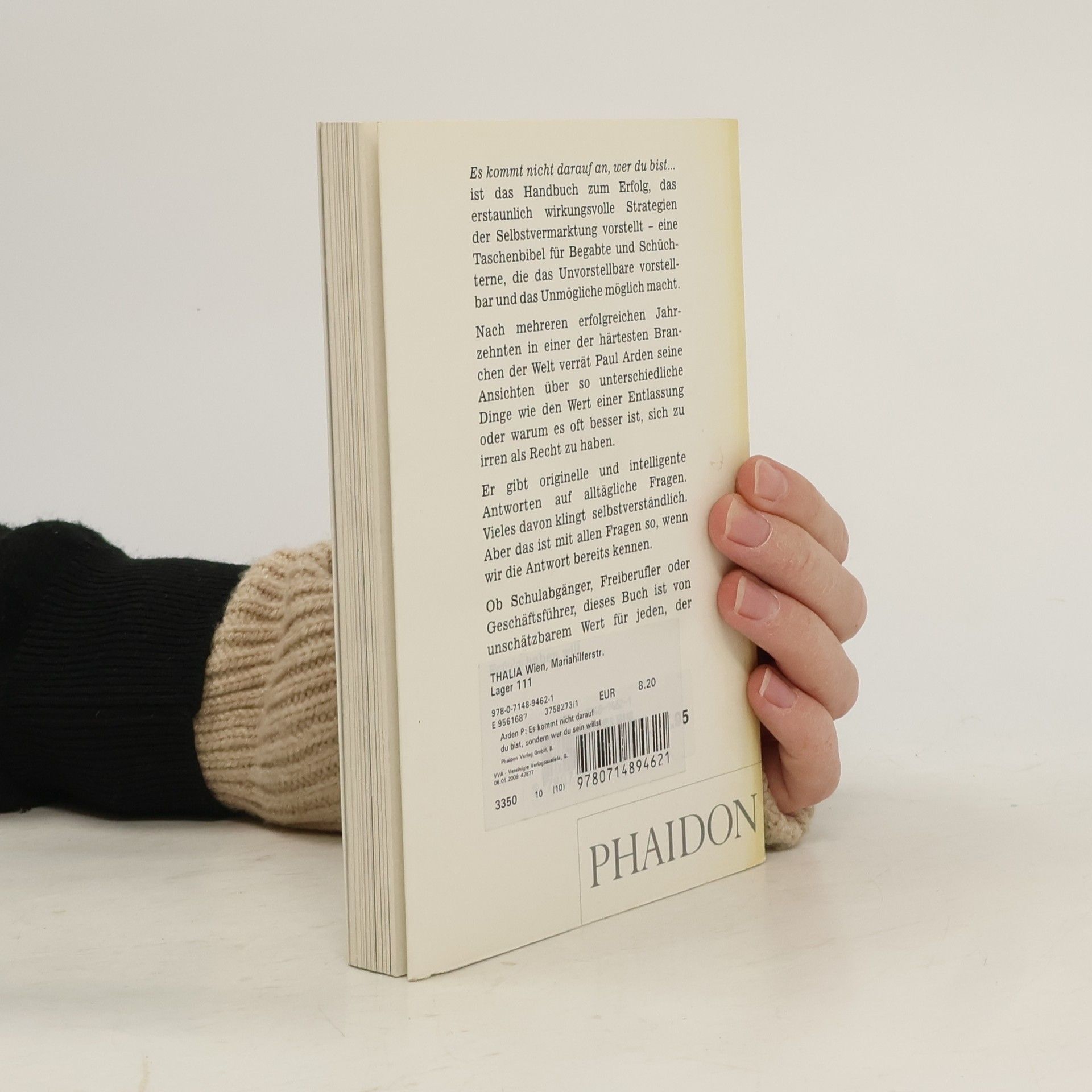 Werbefachmann Paul Arden zeigt in einer kurzen Anleitung, wie man das Beste aus sich machen kannEine Taschenbibel für Begabte und Schüchterne, die das Unvorstellbare vorstellbar und das Unmögliche möglich machtBeleuchtet den Nutzen, den ein Rausschmiss haben kann, und erklärt, warum es oft besser ist, sich zu irren als Recht zu habenEin erbaulicher, humorvoller kleiner Band, der originelle und schlüssige Antworten auf Alltagsfragen bereithält.