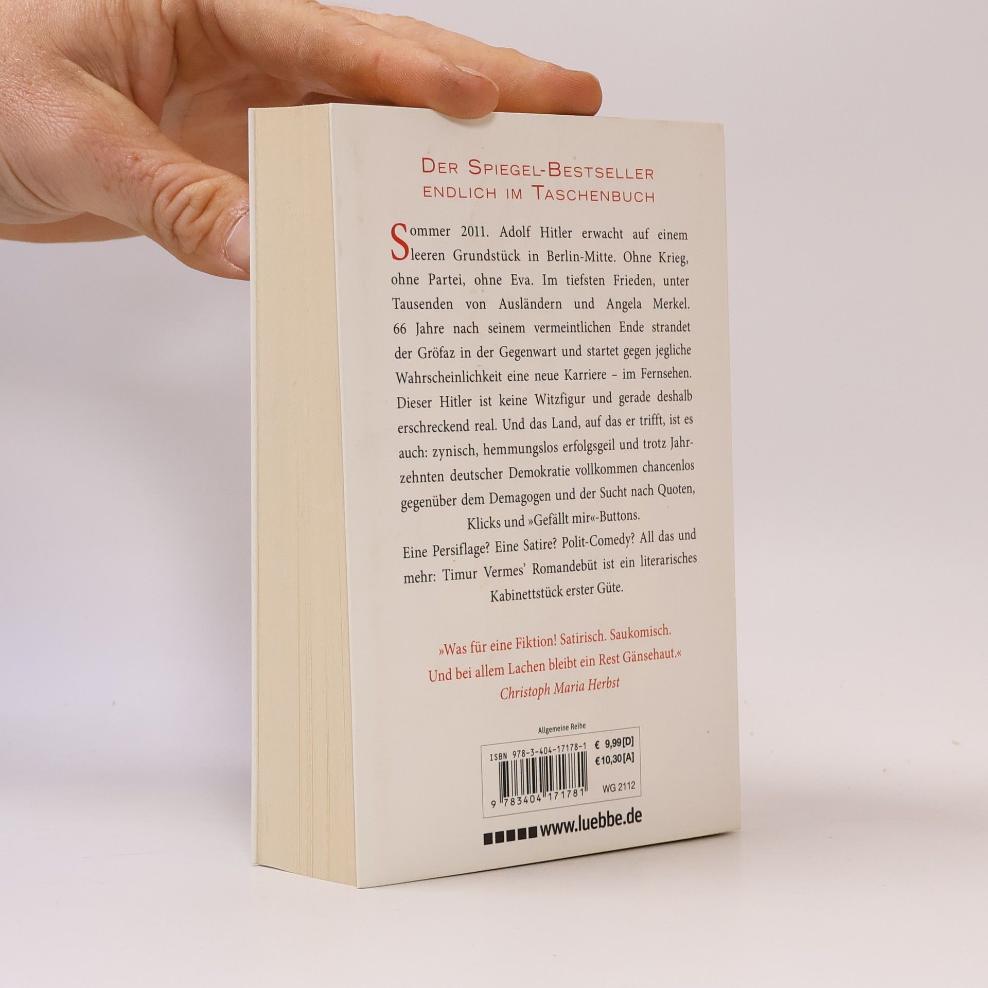 Sommer 2011. Adolf Hitler erwacht auf einem leeren Grundstück in Berlin-Mitte. Ohne Krieg, ohne Partei, ohne Eva, dafür unter Tausenden von Ausländern und Angela Merkel. 66 Jahre nach seinem vermeintlichen Ende startet er gegen jegliche Wahrscheinlichkeit eine neue Karriere im Fernsehen. Dieser Hitler ist keine Witzfigur, sondern erschreckend real. Und das Land, auf das er trifft, ist es auch: zynisch, hemmungslos erfolgsgeil und vollkommen chancenlos gegenüber dem Demagogen und der Sucht nach Quoten, Klicks und »Gefällt mir!«-Buttons. Eine Persiflage? Eine Satire? Polit-Comedy? All das und mehr: Dieser Roman ist ein literarisches Kabinettstück erster Güte.