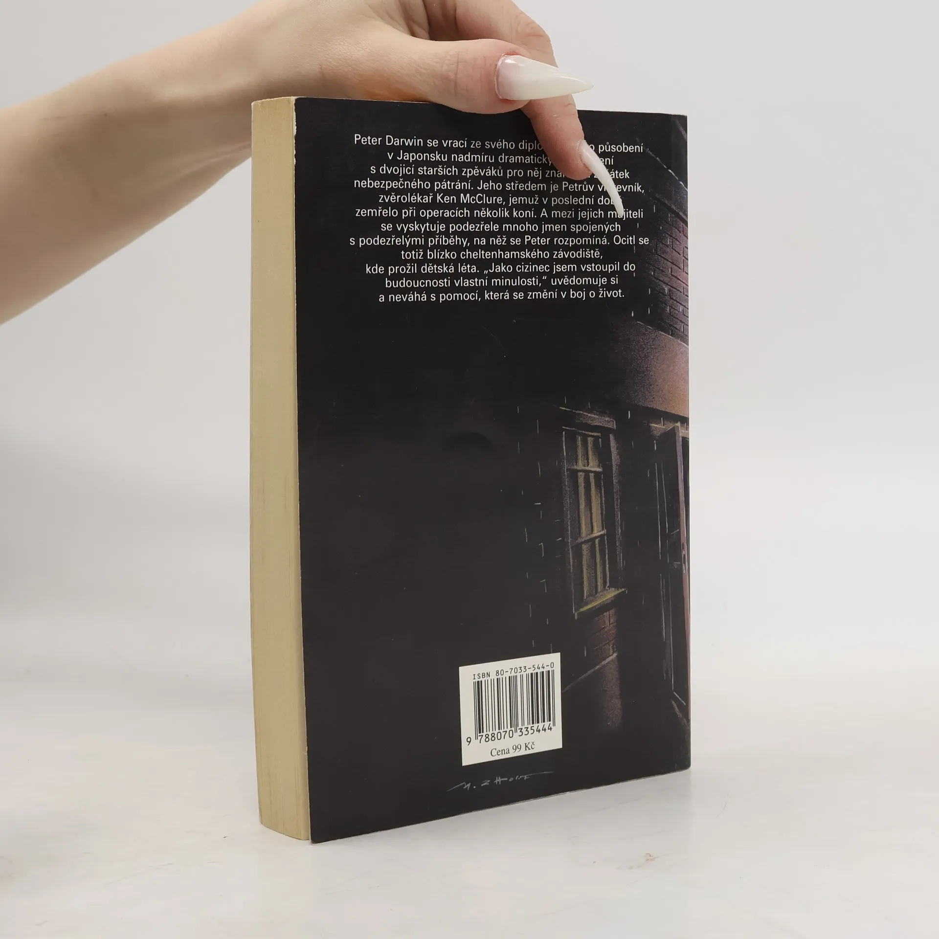 Peter Darwin se vrací ze svého diplomatického působení v Japonsku nadmíru dramaticky. Seznámení s dvojicí starších zpěváků pro něj znamená začátek nebezpečného pátrání. Jeho středem je Petrův vrstevník, zvěrolékař Ken McClure, jemuž v poslední době zemřelo při operacích několik koní. A mezi jejich majiteli se vyskytuje podezřele mnoho jmen spojených s podezřelými příběhy, na něž se Peter rozpomíná. Ocitl se totiž blízko cheltenhamského závodiště, kdo prožil dětská léta. "Jako cizinec jsem vstoupil do budoucnosti vlastní minulosti" uvědomuje si a neváhá s pomocí, která se změní v boj o život.... celý text