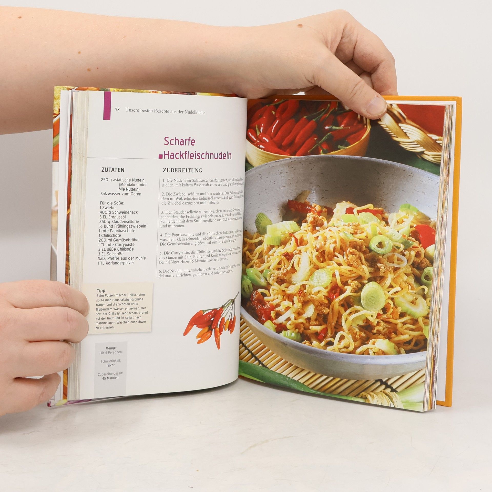 Ob lang oder kurz, dick oder dunn, geringelt oder gerade, breit oder schmal, es gibt kaum eine Form, die man nicht aus Nudelteig kreieren kann - und die Phantasie der Nudelkoche ist schier unermesslich. WIr haben fur Sie 100 herrliche Rezepte gesammelt und aus - probiert. ALle Rezepte sind uber sichtlich zusammengestellt, durchgehend mit farbigen Abbildungen versehen und Schritt fur Schritt erklart. EIn ausfuhrlicher Ratgeberteil, der viele Tipps und Tricks verrat, garantiert den Erfolg. GUtes Gelingen und viel SpaSS beim Kochen und GenieSSen.