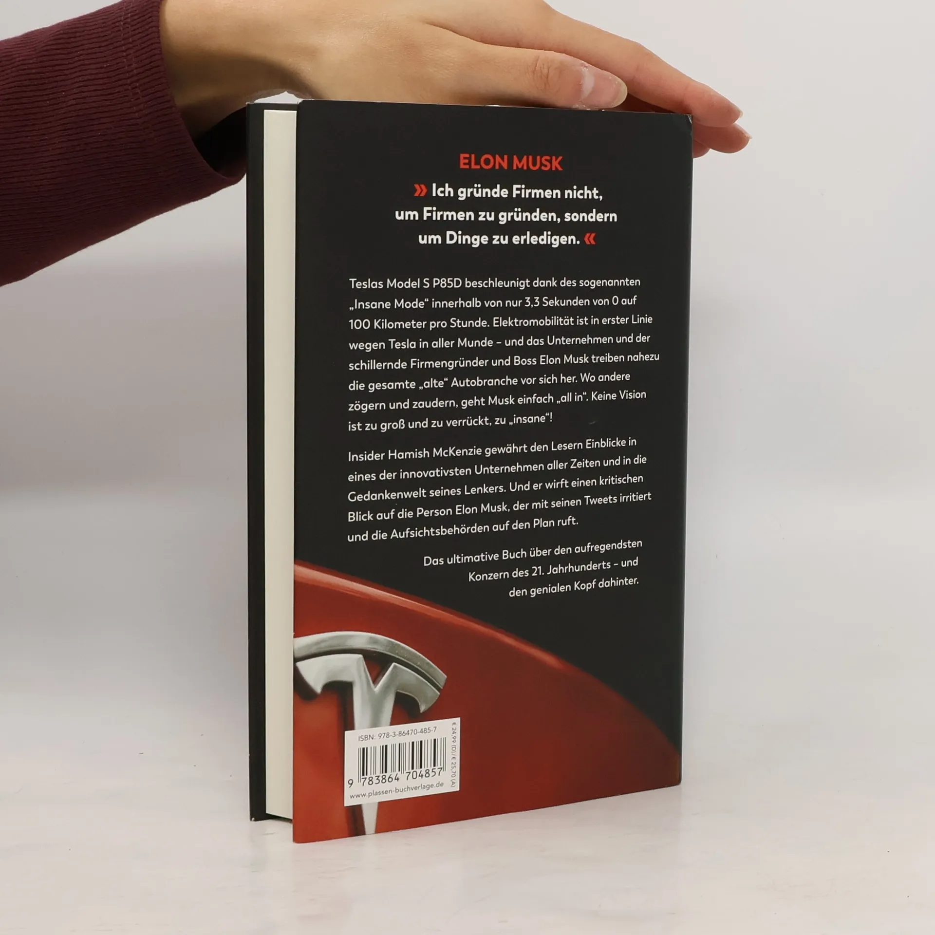 Ein Tesla-Motors-Insider erzählt die Geschichte des revolutionärsten Autoherstellers seit Ford und des Mannes, der ihn zum Erfolg führt. Hamish McKenzie zeigt, wie unter Elon Musks „Insane Mode“-Leitung gerade das Ende eines Zeitalters eingeläutet wird – das der Benzinmotoren. Musk hängt mit seiner Vision und seinen Autos alle anderen Hersteller der Branche ab, entgegen aller Widerstände und Rückschläge. Dies ist nicht nur die Geschichte einer unglaublich bahnbrechenden Automarke – es ist die Geschichte eines unbeirrbaren Visionärs und einer neuen Ära, rasant und aufschlussreich.