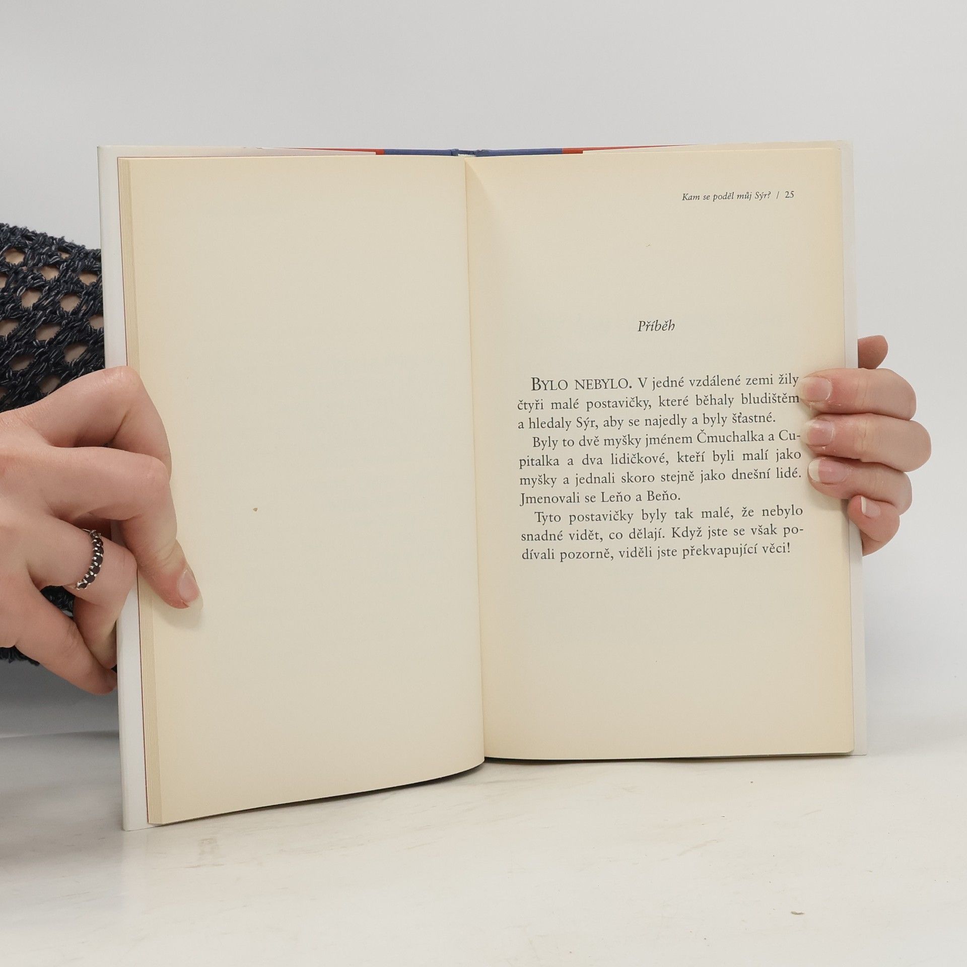 Jedná se o podobenství, které odhaluje hluboké pravdy o změně. Je to zábavný a poučný příběh o čtyřech zajímavých postavičkách, které žijí v „Bludišti“, kde hledají „Sýr“. Sýr je metaforou toho, co v životě chceme, ať už je to zaměstnání, partnerský vztah, peníze, dům, svoboda, dobré zdraví, společenské uznání nebo duševní vyrovnanost. Bludiště je místo, kde hledáme to, co chceme.