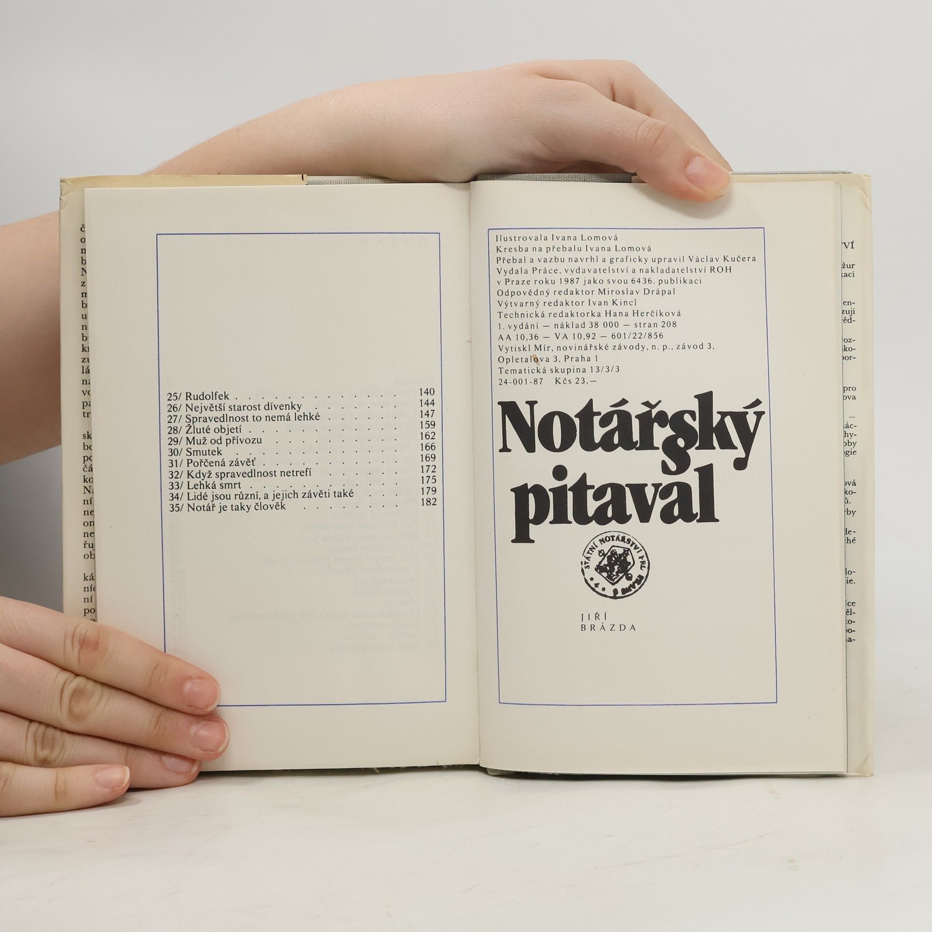 Zajímavé příhody z autorových zážitků se většinou týkají majetkových převodů, dědictví a vůbec posledních věcí člověka - prostě událostí, kdy se nejvíce projevují kladné i záporné vlastnosti lidí. Notář bývá svědkem upřímného smutku i pokrytectví, slušnosti i nečestnosti, rozumu i pošetilosti, štědrosti i hrabivosti, lásky i nenávisti. Třicet pět pestrých případů pitavalu odráží dlouhá léta bohaté notářské praxe.