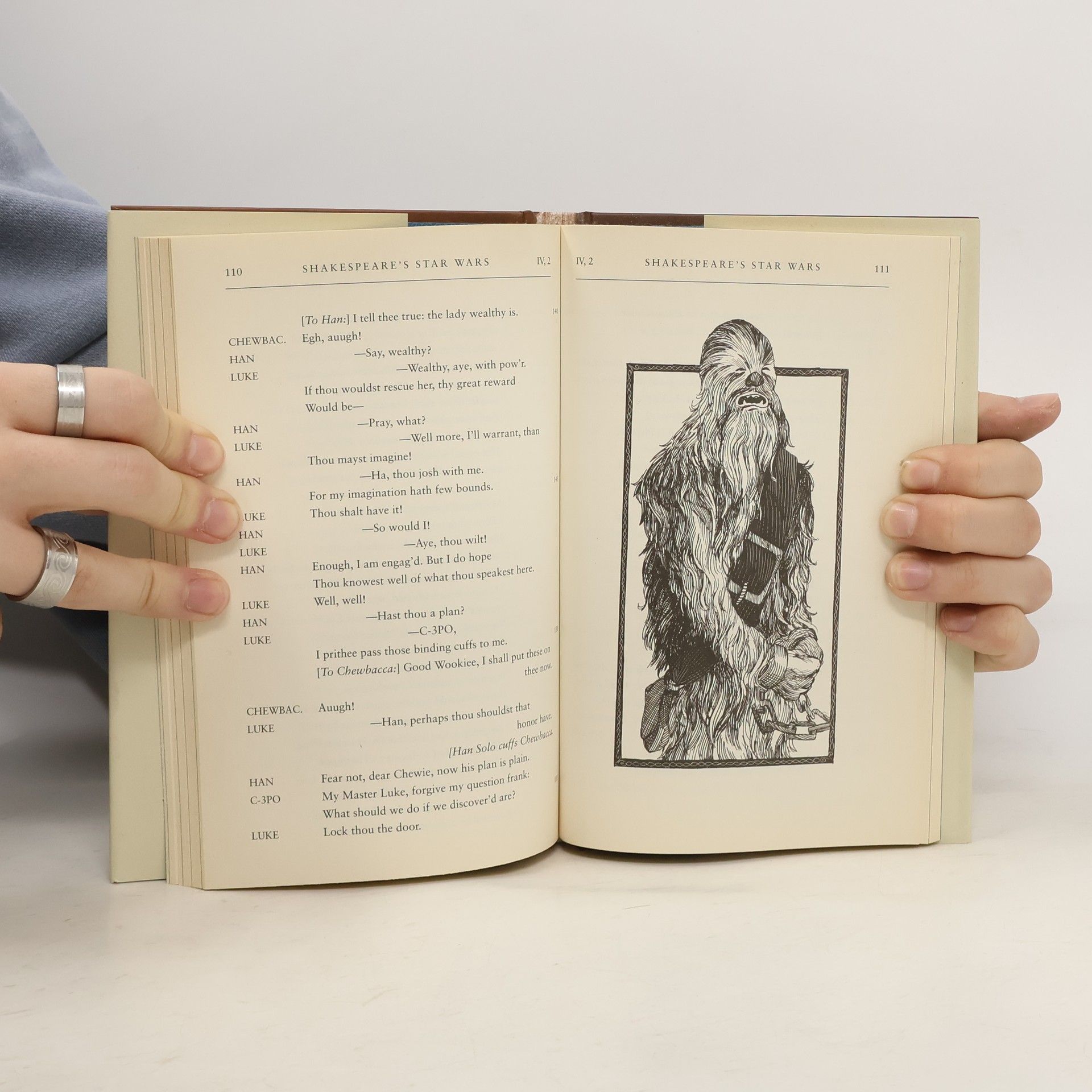The New York Times Best Seller Experience the Star Wars saga reimagined as an Elizabethan drama penned by William Shakespeare himself, complete with authentic meter and verse, and theatrical monologues and dialogue by everyone from Darth Vader to R2D2. Return once more to a galaxy far, far away with this sublime retelling of George Lucas’s epic Star Wars in the style of the immortal Bard of Avon. The saga of a wise (Jedi) knight and an evil (Sith) lord, of a beautiful princess held captive and a young hero coming of age, Star Wars abounds with all the valor and villainy of Shakespeare’s greatest plays. Authentic meter, stage directions, reimagined movie scenes and dialogue, and hidden Easter eggs throughout will entertain and impress fans of Star Wars and Shakespeare alike. Every scene and character from the film appears in the play, along with twenty woodcut-style illustrations that depict an Elizabethan version of the Star Wars galaxy. Zounds! This is the book you’re looking for.