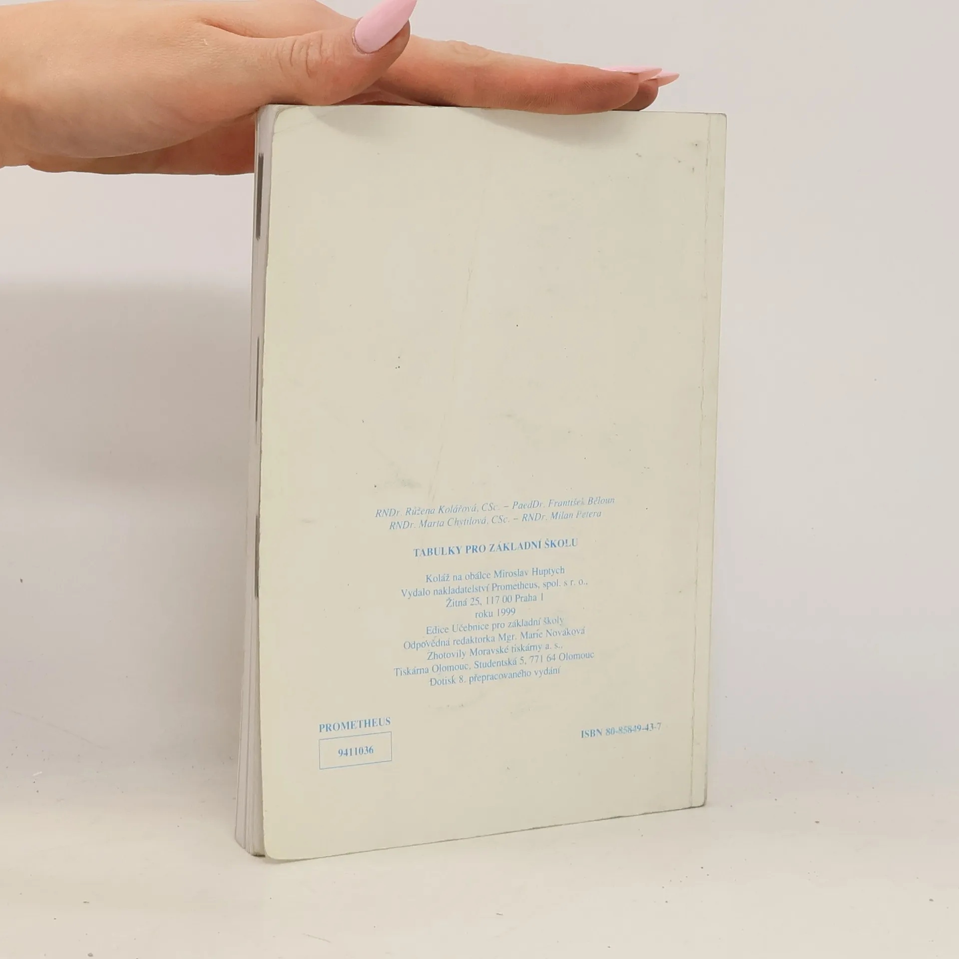 Tabulky pro základní školu. Zpracovali: PaedDr. František Běloun (matematickou část), RNDr. Marta Chytilová, CSc., RNDr. Růžena Kolářová, CSc. (fyzikální část) a RNDr. Milan Petera (chemickou část). Edice: Učebnice pro základní školy. Dotisk 8., přepracovaného vydání.