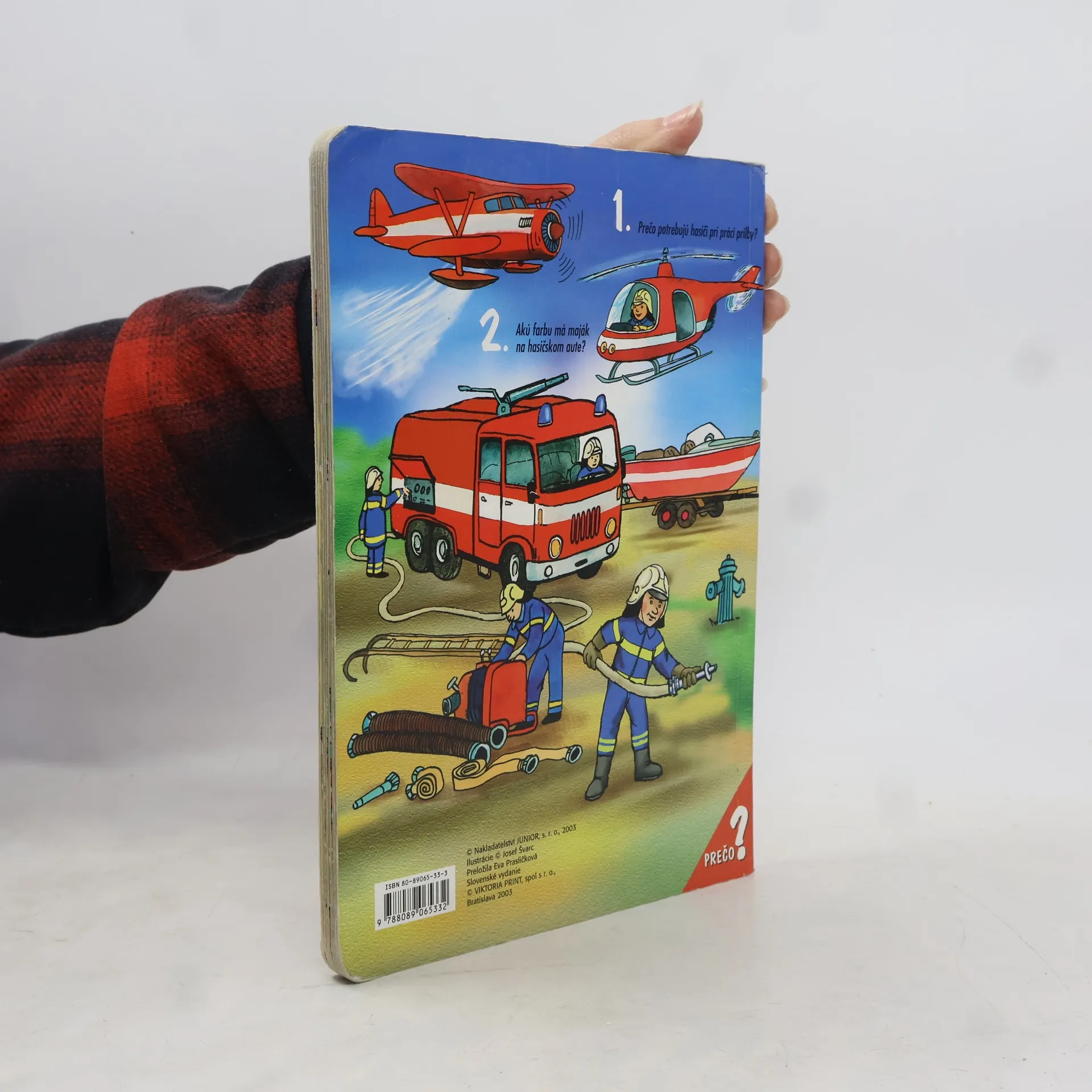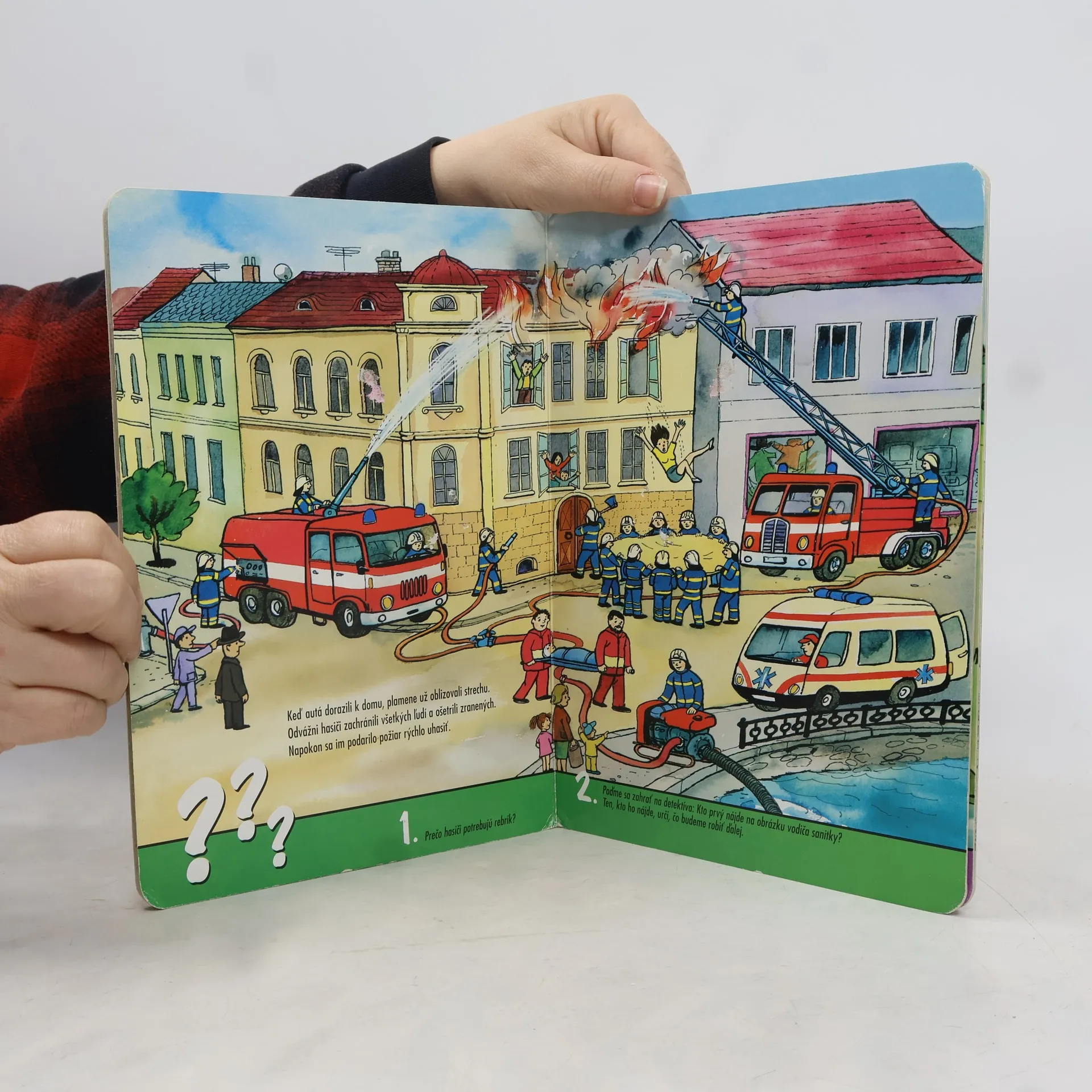 Leporelo pre najmenších, v ktorom sa deti dozvedia o práci hasičov, prečo potrebujú hasiči pri práci prilby a akú farbu má maják na hasičskom aute.