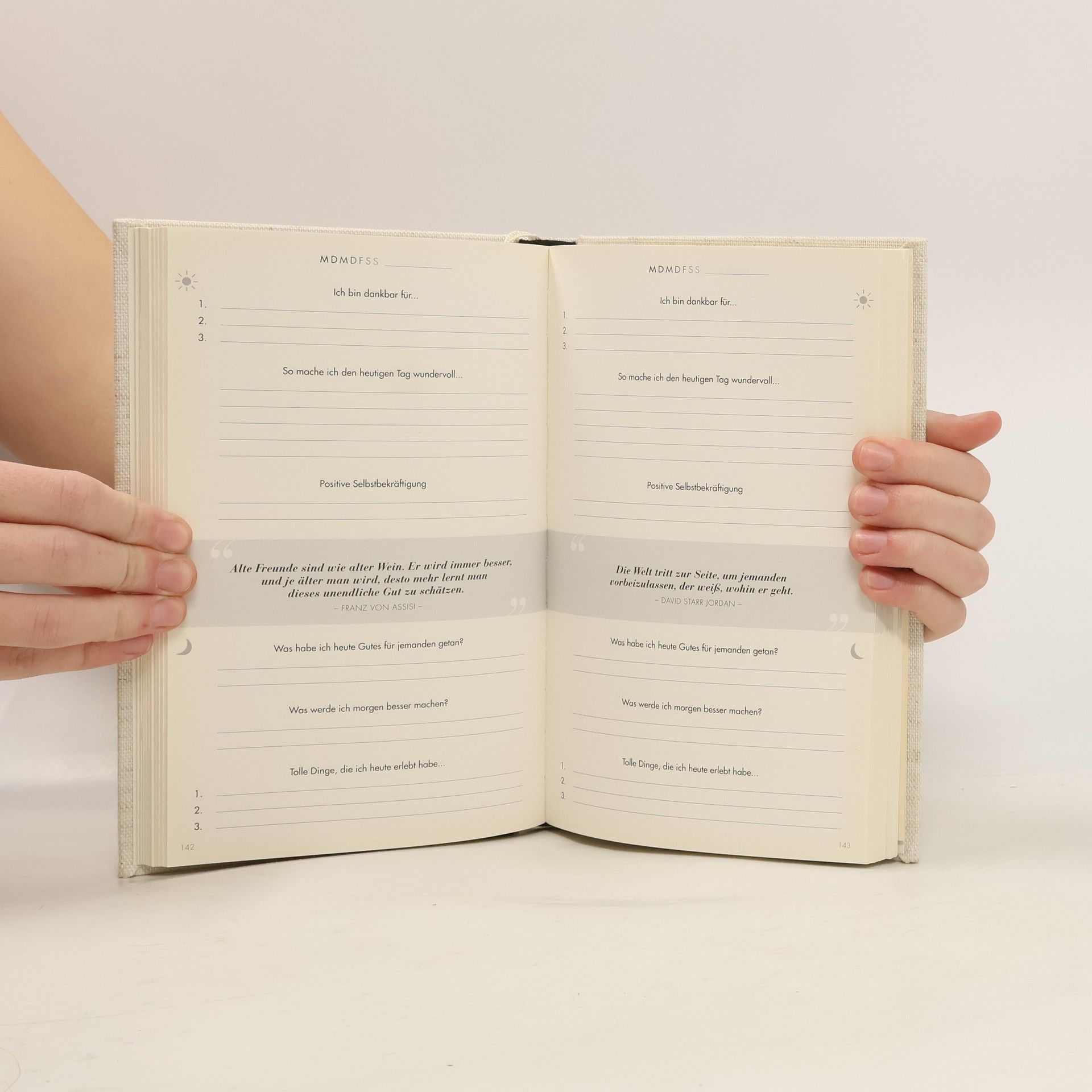 Das erfolgreichste Dankbarkeitstagebuch Deutschlands, über 1 Million Nutzer: innen: Was ist der sicherste Weg, sein Leben zu verbessern? Wer sich gut fühlen will, muss auch gut denken – und das wird in diesem Tagebuch trainiert. Das 6-Minuten-Tagebuch hilft, nicht auf das zu schauen, was fehlt oder nicht passt, sondern sich auf Fortschritt und das Gute zu fokussieren. Simpel & wirkungsvoll werden in jeweils drei Minuten am Morgen und am Abend die praxiserprobten Prinzipien der positiven Psychologie genutzt, um das eigene Wohlbefinden langfristig zu steigern. Sechs Minuten, um wünschenswerte Gewohnheiten – wie zum Beispiel Dankbarkeit, Optimismus oder persönliches Wachstum durch tägliche Reflexion – aufzubauen. So werden positive Veränderungen automatisch in den Alltag integriert und du kannst dein Leben Tag für Tag ein bisschen besser machen – konstant & proaktiv.
