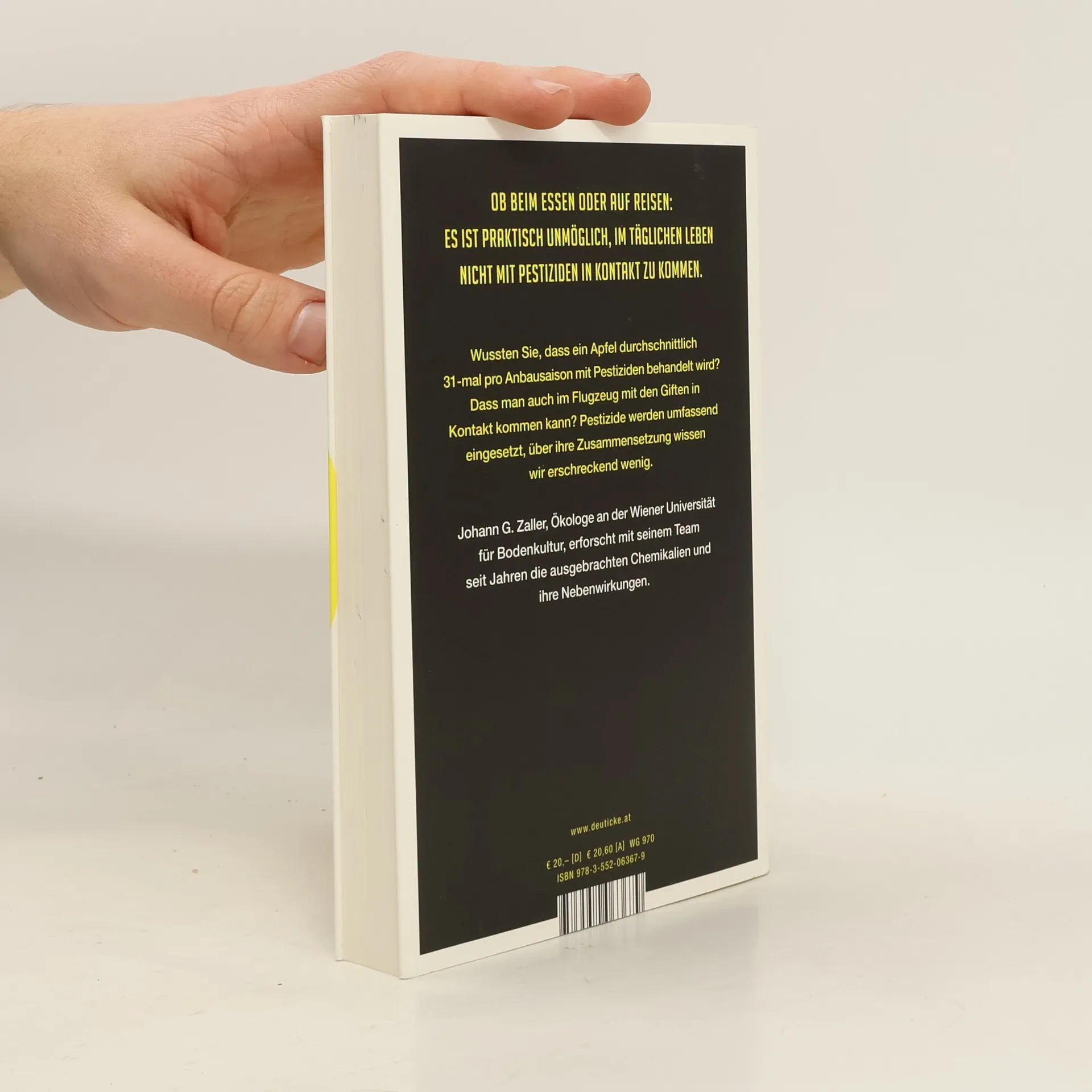 Wussten Sie, dass ein Apfel durchschnittlich 31-mal mit Pestiziden behandelt wird? Dass man auch im Flugzeug mit den Giften in Kontakt kommen kann und dass neben der Landwirtschaft der zweitgrößte Verbraucher von Herbiziden in Deutschland die Deutsche Bahn ist? Pestizide werden umfassend eingesetzt, über ihre Zusammensetzung wissen wir jedoch wenig. Etwa vierzig Chemikalien, die von der WHO als „wahrscheinlich krebserregend“ eingestuft wurden, sind nach wie vor erlaubt. Ein Viertel der Pestizide auf dem Markt sind Fälschungen mit ungewissem Inhalt. Johann G. Zaller, Ökologie-Experte an der Wiener Universität für Bodenkultur, erforscht seit Jahren Chemikalien und ihre Nebenwirkungen für unsere Gesundheit und Umwelt.