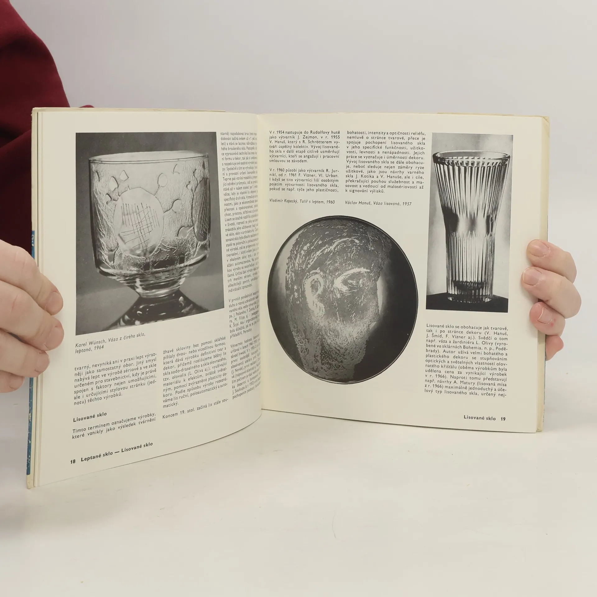 Do slovníkové podoby zarámovaný text je rozvržen do dvou oddílů. V prvém, kratším, přední český estetik výstižně objasňuje nejhlavnější pojmové kategorie sklářských technik a reálie tematizované oblasti. Druhý je galeriínejvýznačnějších uměleckých tvůrců československého skla, narozených v období od devadesátých let minulého století do čtyřicátých let našeho věku. Medailónek každého z nich (s životopisnými údaji a charakteristikou díla) sousedís ukázkou z jeho tvorby na fotografickém snímku.