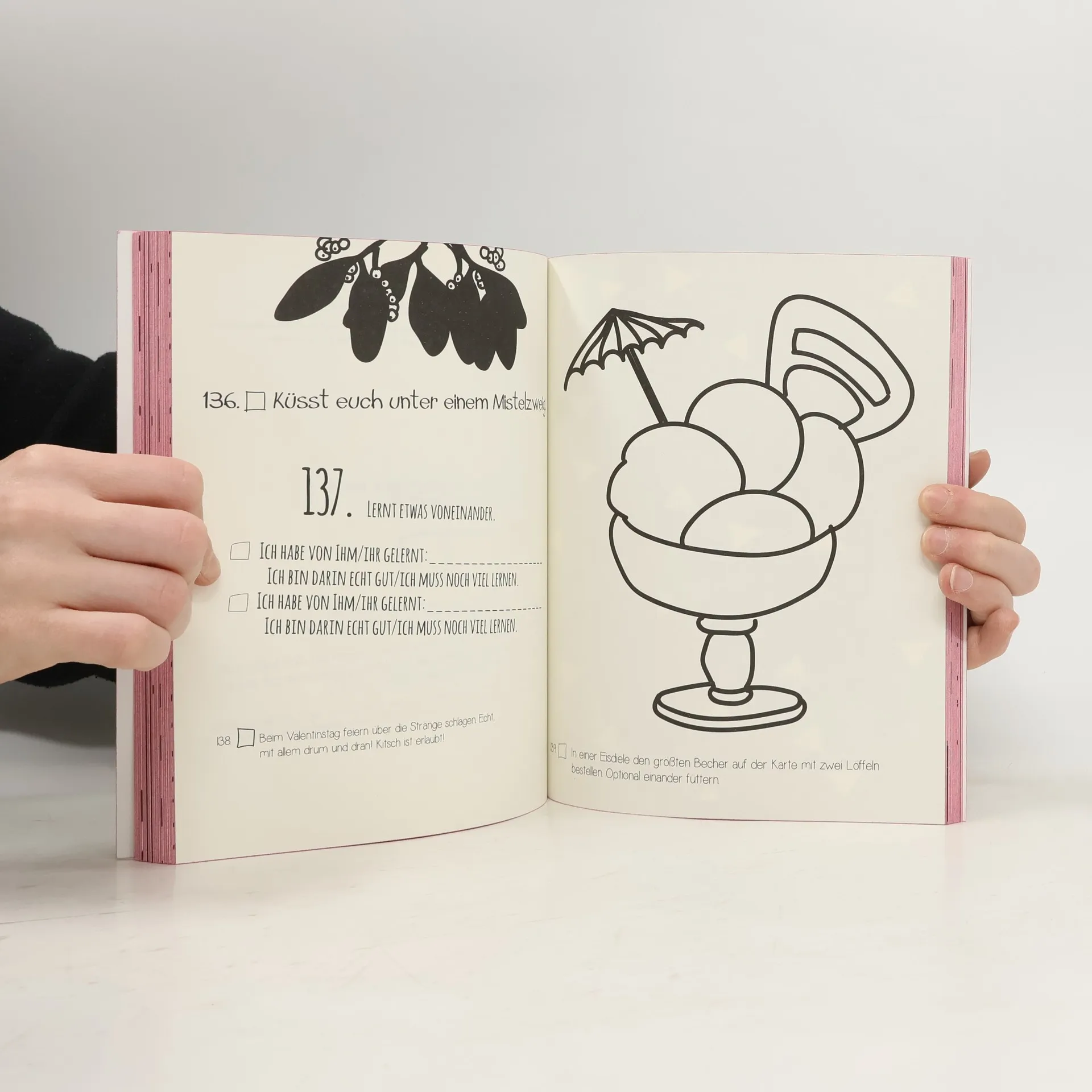 Spaghetti essen wie Susi und Strolch, nachts ans Meer fahren und gemeinsam die Sterne betrachten, Ihren Schatz bei einer Safari vor wilden Tieren beschützen -- ob frisch verliebt oder seit Jahrzehnten ein Paar, mit dieser Bucket List für Paare wird Ihr Leben nicht nur aufregender, Sie lernen Ihren Liebling auch noch einmal von einer ganz neuen Seite kennen. Schreiben Sie (nicht nur für schlechte Zeiten) auf, was Sie aneinander am meisten lieben und machen Sie dieses Buch zum persönlichen Tagebuch Ihrer Beziehung. Lassen Sie sich inspirieren und stürzen Sie sich mit diesen 250 lustigen, verrückten oder romantischen Ideen in das Abenteuer Liebe.
