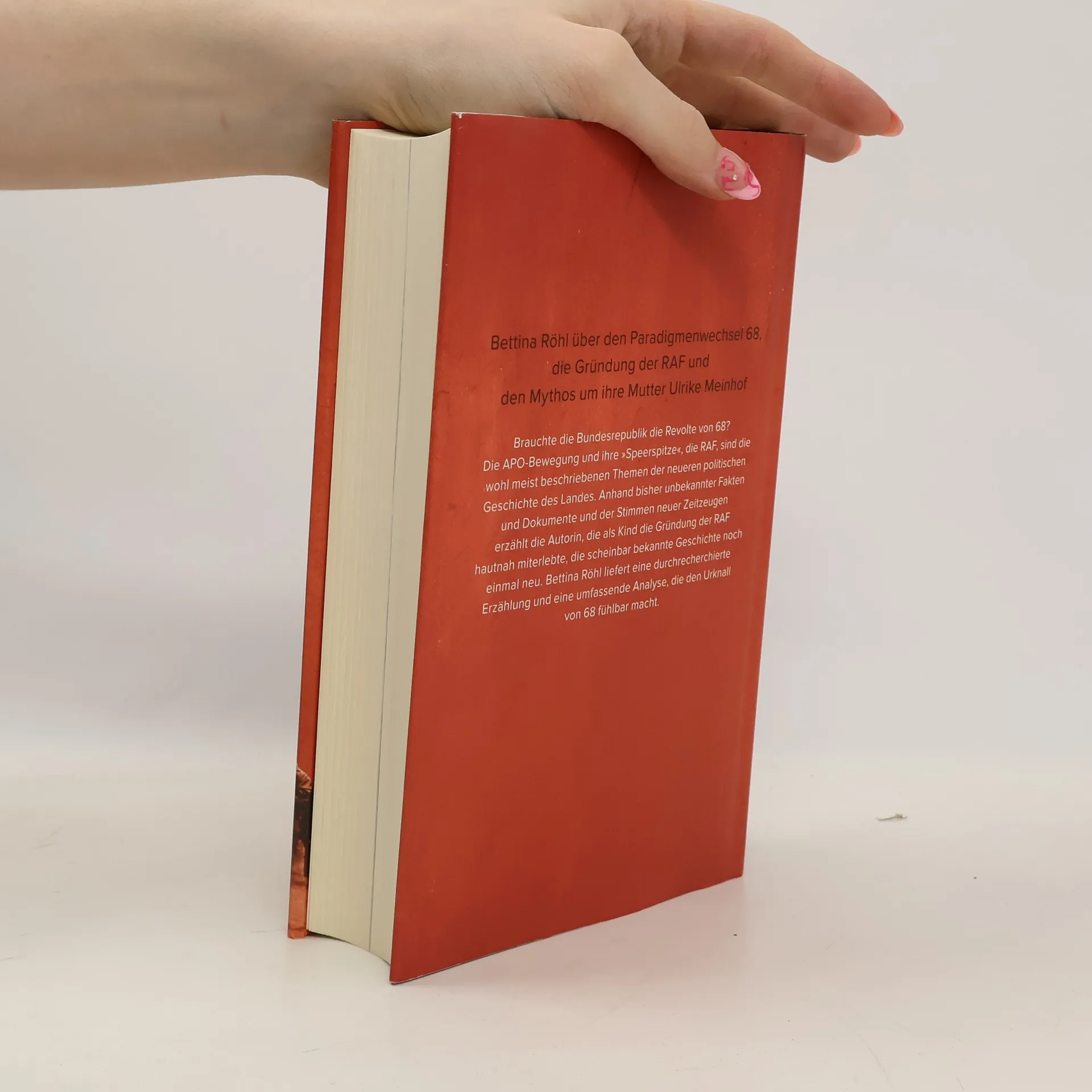Bettina Röhl über ihre letzten gemeinsamen Jahre mit ihrer Mutter Ulrike Meinhof Brauchte die Bundesrepublik die Revolte von 68? Ist 68 gar das Jahr einer „Neugründung“ der heutigen Bundesrepublik? Die APO-Bewegung – und ihre „Speerspitze“, die RAF – ist das wohl meist beschriebene Thema der neueren politischen Geschichte des Landes. Mit bisher unbekannten Fakten und den Stimmen neuer Zeitzeugen unterlegt, liefert Bettina Röhl, die als Kind die Gründung der RAF hautnah miterlebte, eine spannende Analyse und erzählt die scheinbar bekannte Geschichte neu. Bei ihren Recherchen fand Bettina Röhl zahlreiche bisher unveröffentlichte Briefe, Dokumente und Fotos, die den Leser die damalige Zeit hautnah miterleben und nachvollziehen lassen. Ausstattung: mit 16 S. Bildteil