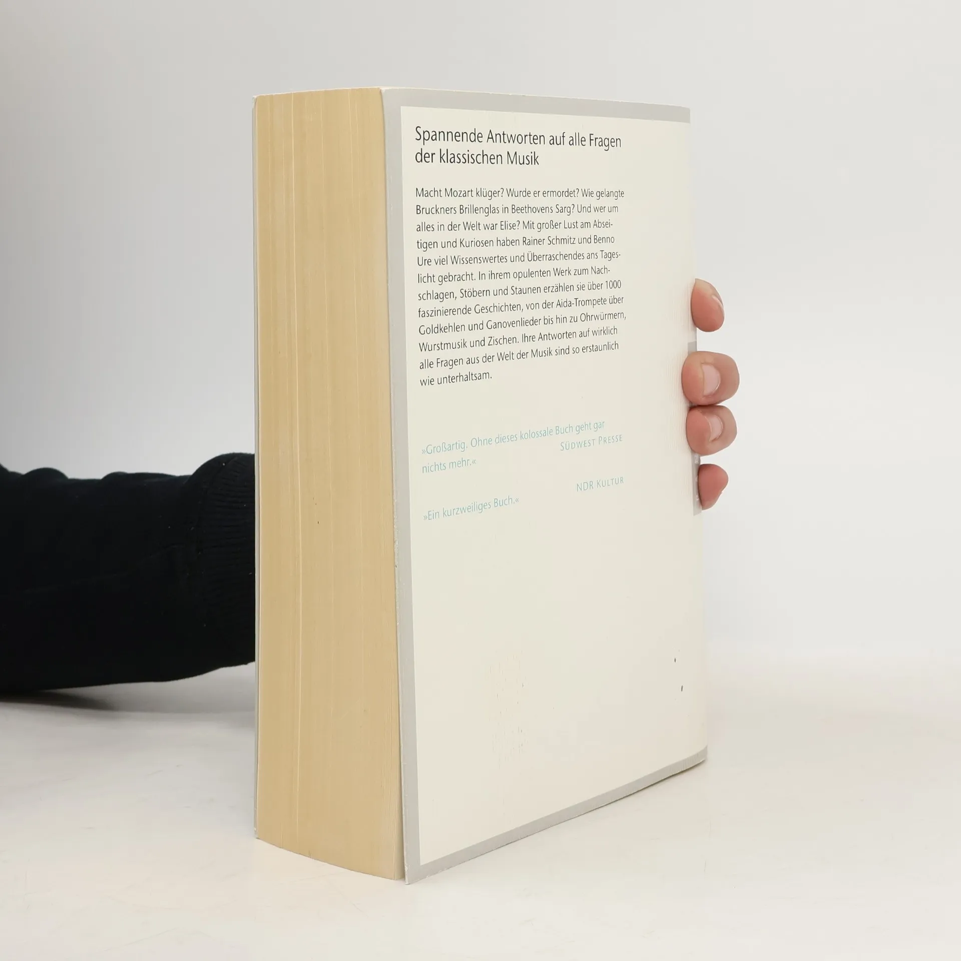Macht Mozart klüger? Überraschende Antworten auf wirklich alle Fragen aus der Welt der Musik Wurde Mozart ermordet? Wie gelangte Bruckners Brillenglas in Beethovens Sarg? Und wer um alles in der Welt war Elise? Mit großer Lust am Abseitigen und Kuriosen haben Rainer Schmitz und Benno Ure in jahrelangen Recherchen viel Wissenswertes und Überraschendes ans Tageslicht gebracht. Ein Buch, das zum Schmökern, Staunden und Entdecken einlädt – im Siedler Verlag unter dem Titel »Tasten, Töne und Tumulte« erschienen.