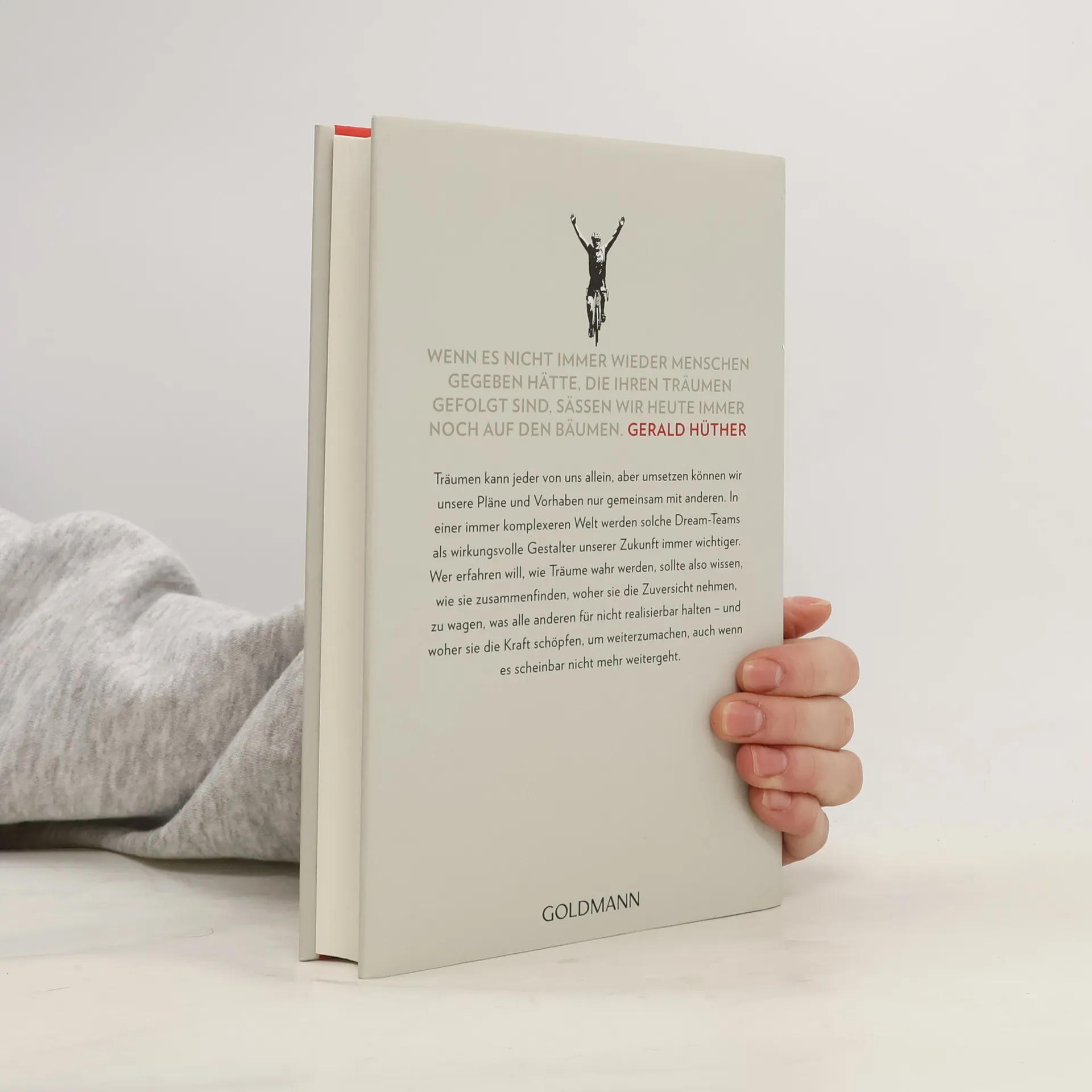 Wenn es nicht immer wieder Menschen gegeben hätte, die ihren Träumen gefolgt sind, säßen wir heute immer noch auf den Bäumen. Der renommierte Hirnforscher Gerald Hüther zeigt in diesem außergewöhnlichen Werk, wie die Verwirklichung kleiner und großer Träume gelingen kann. Die überraschende Erkenntnis: Träumen kann jeder allein, aber die Umsetzung unserer Pläne gelingt nur gemeinsam. In einer komplexen Welt sind solche Dream-Teams entscheidend für die Gestaltung unserer Zukunft. Wer erfahren möchte, wie Träume wahr werden, sollte verstehen, wie diese Teams zusammenfinden, woher sie die Zuversicht nehmen, das Unmögliche zu wagen, und wie sie die Kraft finden, auch in schwierigen Zeiten weiterzumachen. Hüthers Erkenntnisse aus der Neurowissenschaft werden durch die Geschichte der Radsportler Nicole Bauer und Sven Ole Müller anschaulich in die Praxis übertragen. Mit ihrem Amateurteam gewannen sie 2016 unerwartet das anspruchsvollste Radrennen der Welt, das Race Across America. Gemeinsam suchen die Autoren nach dem Geheimnis des Gelingens und beantworten, wie Mitglieder einer Gemeinschaft einander ermutigen und inspirieren müssen, damit sowohl der Einzelne als auch das Team seine Potenziale entfalten kann. Die neue Perspektive auf die wissenschaftlichen Hintergründe der Potentialentfaltung wird durch eine mitreißende Erfolgsstory verdeutlicht.