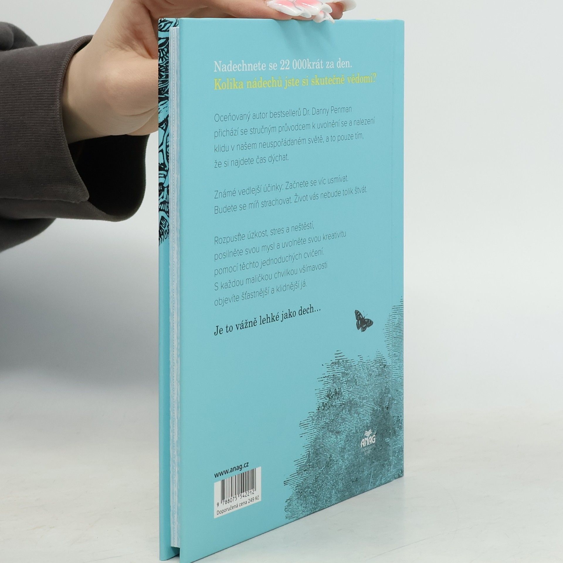 Mezinárodně oceňovaný autor Dr. Danny Penman přichází se stručným průvodcem k nalezení klidu v tomto chaotickém světě, jednoduše tím, že si najdete čas na dýchání. Rozlučte se se svou úzkostí, stresem a nespokojeností, obohaťte svou mysl a uvolněte svou kreativitu díky těmto jednoduchým cvikům. Chcete být šťastnější? Tak buďte! Známé nežádoucí účinky: začnete se více usmívat, budete si dělat méně starostí, život nebude tak obtížný. S každým krátkým okamžikem uvědomění objevíte své šťastnější a klidnější Já. Je to opravdu tak snadné jako dýchání samotné.