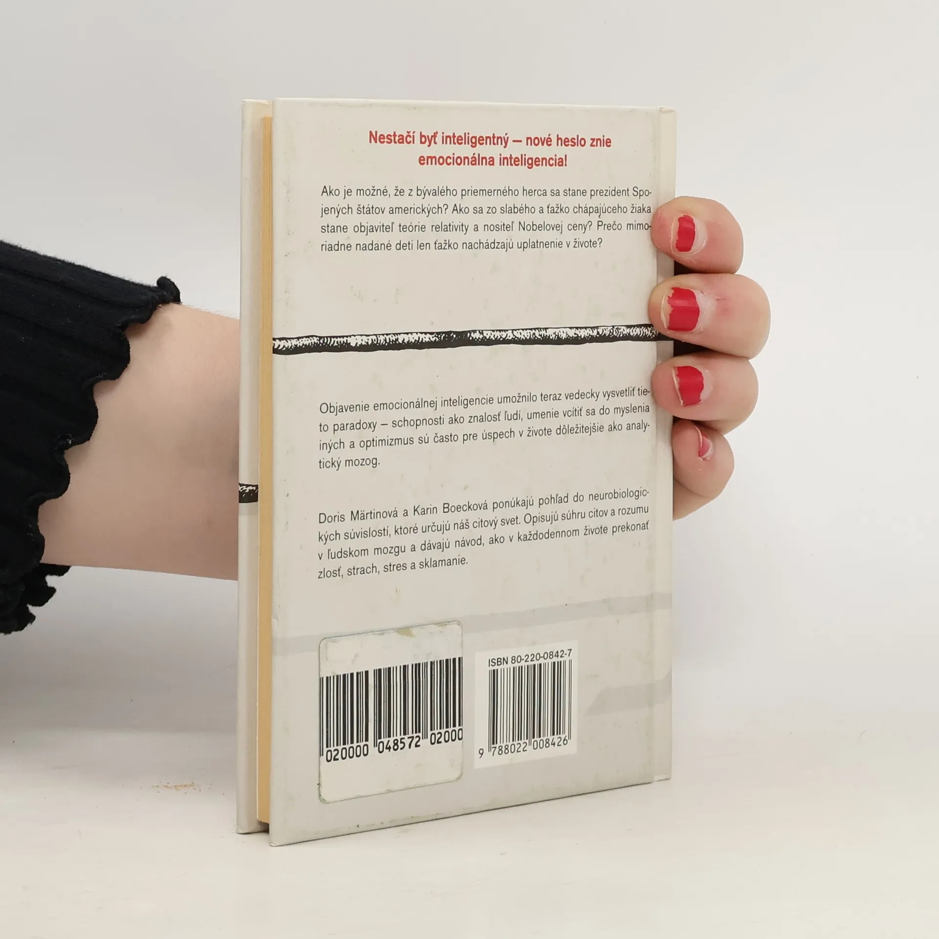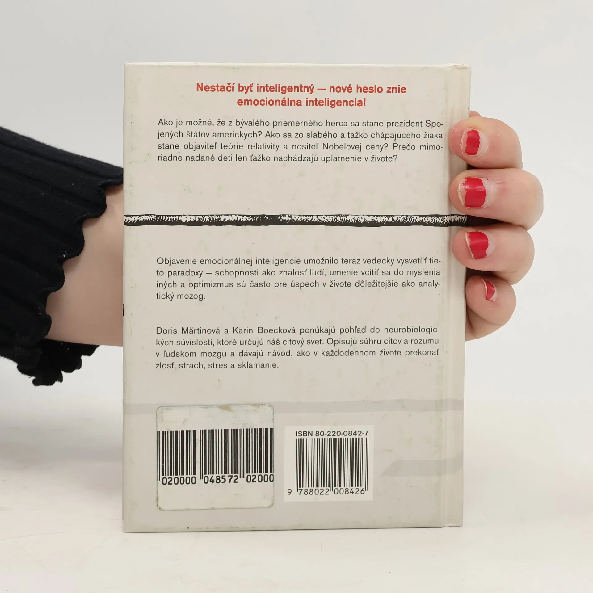 Vplyv emocionálnej inteligencie na náš úspech Doris Märtinová a Karin Boecková ponúkajú pohľad do neurobiologických súvislostí, ktoré určujú náš citový svet. Opisujú súhru citov a rozumu v ľudskom mozgu a dávajú návod, ako v každodennom živote prekonať zlosť, strach, stres a sklamanie.
