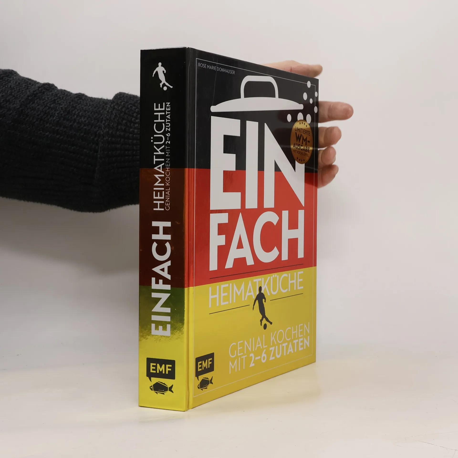 Die WM steht vor der Tür! Aus diesem Grund erscheint „Einfach – Heimatküche“ in einer attraktiven limitierten Sonder-WM-Ausgabe mit neuem Cover in hochwertiger Aufmachung und als besonderes Extra einem beigelegten Siegerkochlöffel mit eingravierten Meistersternen. Wieso kompliziert, wenn es auch einfach geht? Genuss ist ohne unzählige Zutaten, Schüsseln und Töpfe möglich. Rose Marie Donhauser konzentriert sich deshalb in „Einfach – Heimatküche“ auf das Wesentliche: maximal sechs Zutaten, die zusammen erfrischend bodenständige Gerichte ergeben. Bebilderte Zutaten und eine gut lesbare Schriftgröße bringen besonderen Komfort beim Nachkochen. Die 150 traditionsreichen Rezepte aus der Alltagsküche sorgen für eine große Portion Nostalgie: Bei Wiener Schnitzel, Heringssalat, Sauerbraten und anderen Klassikern der deutschen Küche kommt garantiert Sehnsucht nach Mutters oder Großmutters Küchentisch auf. Wecken Sie Kindheitserinnerungen mit köstlichen Vorspeisen, Hauptgerichten und Desserts!