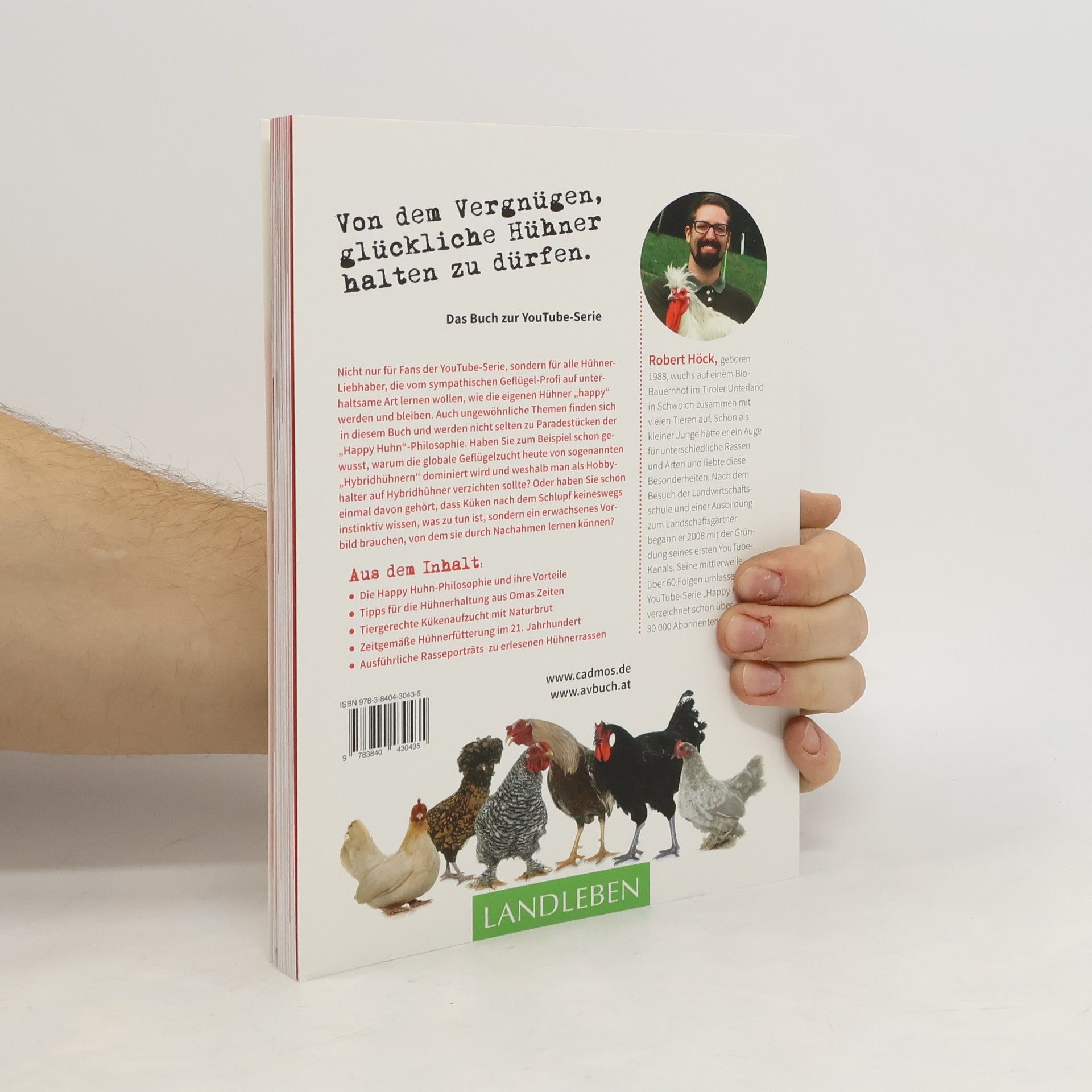 Für Fans der YouTube-Serie und Hühner-Liebhaber, die auf unterhaltsame Weise lernen möchten, wie man Hühner glücklich hält, bietet dieses Buch wertvolle Einblicke. Der erste und größte Teil behandelt verschiedene Aspekte der Hühnerhaltung, wobei Robert Höck mit erfrischenden Ansätzen an normalerweise trockene Themen wie Fütterung, Hühnerstall und Tiergesundheit herangeht. Seine „Happy Huhn-Philosophie“ stellt das Wohlergehen der Hühner in den Vordergrund und zeigt, dass der bequemste Weg für den Halter nicht immer die besten Lösungen für die Tiere bietet. Höck erklärt, wie Hühner sich in der Natur ernähren und welche Konsequenzen dies für die Fütterung hat. Auch ungewöhnliche Themen werden behandelt, wie die Dominanz von Hybridhühnern in der globalen Geflügelzucht und die Notwendigkeit eines erwachsenen Vorbilds für Küken. Das Buch bietet auch für Kenner der YouTube-Serie Neues und beleuchtet bekannte Themen aus einer anderen Perspektive. Ein Highlight sind die Rasseportraits im hinteren Drittel, die die Geschichten seltener Hühnerrassen erzählen. Die begleitenden YouTube-Videos ergänzen die Informationen, indem sie die Tiere „in Aktion“ zeigen und so das Verständnis vertiefen.