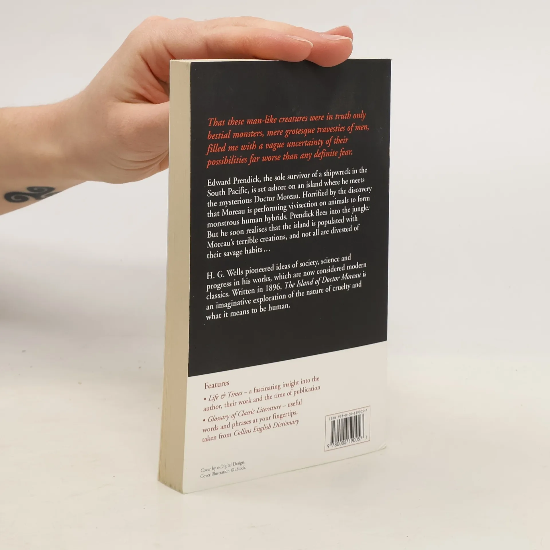 HarperCollins is proud to present its incredible range of best-loved, essential classics. "That these man-like creatures were in truth only bestial monsters, mere grotesque travesties of men, filled me with a vague uncertainty of their possibilities far worse than any definite fear." Edward Prendick, the sole survivor of a shipwreck in the South Pacific, is set ashore on an island where he meets the mysterious Doctor Moreau. Horrified by the discovery that Moreau is performing vivisection on animals to form monstrous human hybrids, Prendick flees into the jungle. But he soon realises that the island is populated with Moreau's terrible creations, and not all are divested of their savage habits . . . H. G. Wells pioneered ideas of society, science and progress in his works, which are now considered modern classics. Written in 1896, The Island of Doctor Moreau is an imaginative exploration of the nature of cruelty and what it means to be human.