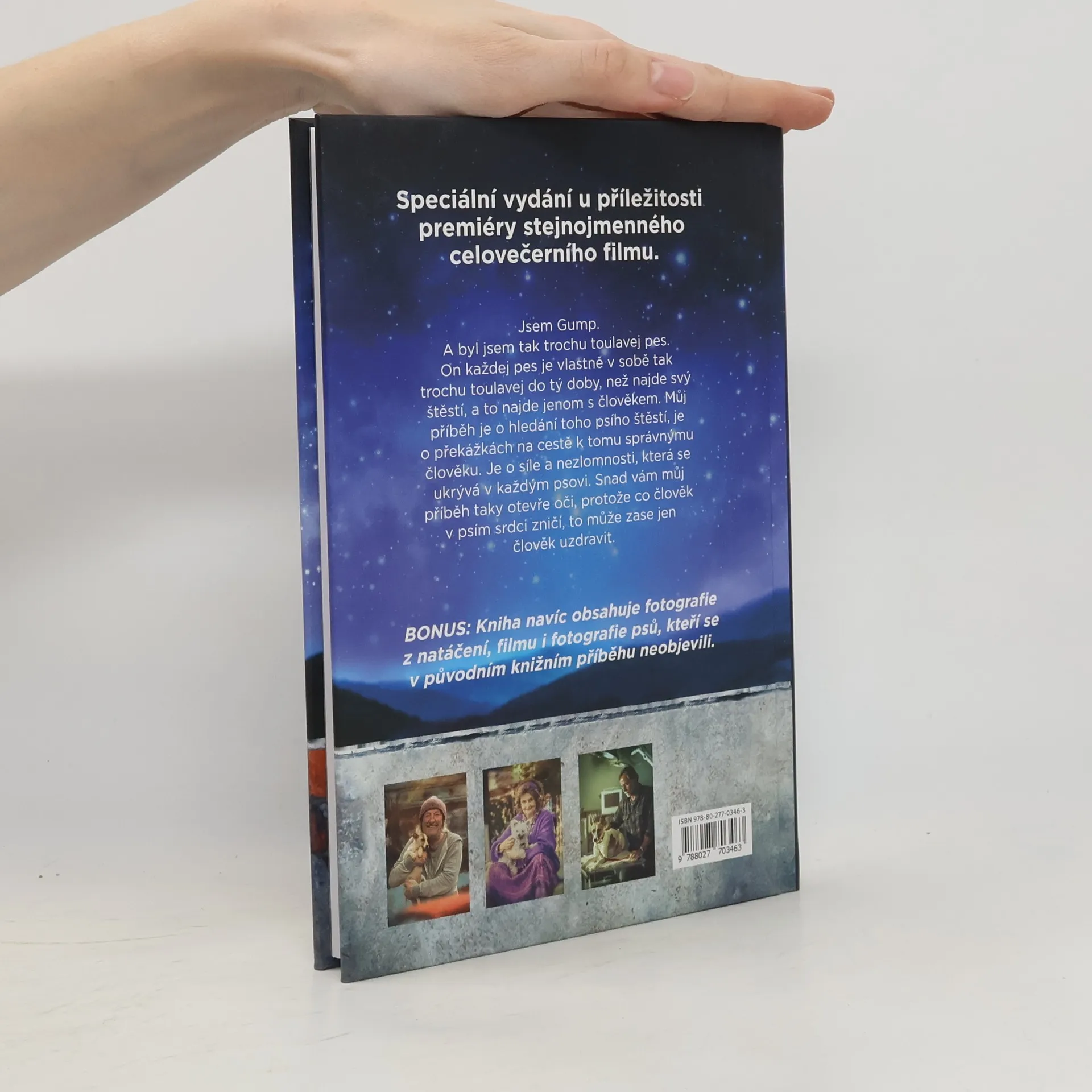 Srdceryvné vyprávění očima toulavého psa Gumpa. Příběh o cestě plné překážek a pastí, o lásce, která má sílu dosáhnout až za duhový most, o neochvějné psí obětavosti položit život za svého páníčka, o naději, kterou nespoutá ani ten nejpevnější řetěz, ale také o zvířecí moudrosti, která nám lidem otevírá oči. Gump přináší syrový a autentický příběh, vystavěný z reálných zkušeností člověka, který se celý svůj život věnuje záchraně týraných psů, odhalování psích množíren a napravování křivd, kterých se lidé v bezcitné honbě za penězi dopouštíi na nejlepším příteli člověka. Je to kniha bez příkras a hollywoodského zjemňování. Jako bychom nahlédli do hlavy toulavého psa Gumpa a viděli všechno, co si prožil, jeho očima. Autor se setkal s trýznivými psími osudy a s jejich zážitky, nad kterými někdy zůstává rozum stát. Touto knihou chce lidem otevřít oči a ukázat jim, že každý z nás může pomoci, pokud si začne všímat dění kolem sebe, a přestane spoléhat, že situaci napraví někdo jiný. Až pochopíme, co nám psí duše dokážou nabídnout, může být náš život mnohem bohatší. Knihu doplňují krásné akvarelové ilustrace Weroniky Gray a fotografie lidí a psů, kterými se autor v příběhu Gumpa inspiroval.