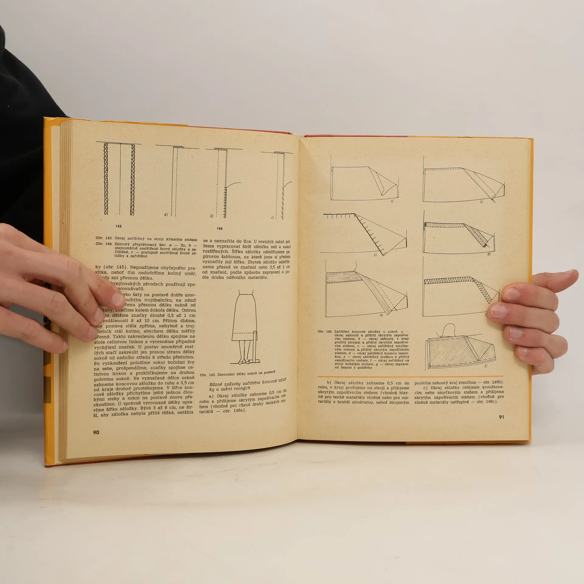 Pomocná kniha pro 1. a 2. roč. prům. školy oděvní v Praze a pro učitelky prací v domácnosti na všeobec. vzdělávacích školách. Podrobný popis jednotlivých pracovních postupů při zhotovování oděvů až ke konečné úpravě hotového výrobku s názornými obrázky. Úvodní kapitoly jsou věnovány nejrůznějším krejčovským pomůckám, seřizování i údržbě šicího stroje a zhotovování základních střihů.