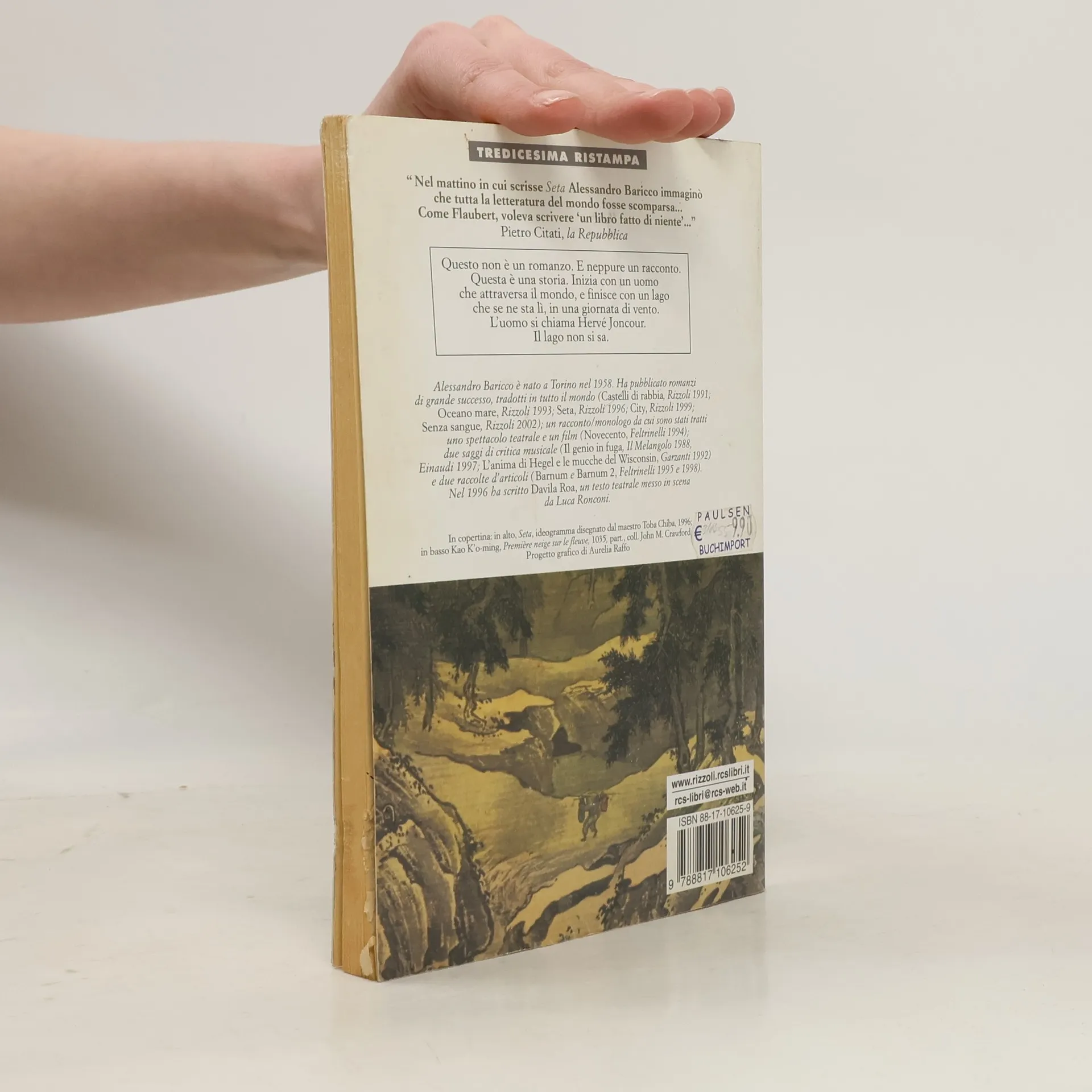 Nel mattino in cui scrisse Seta Alessandro Baricco immaginò che tutta la letteratura del mondo fosse scomparsa... Come Flaubert, voleva scrivere "un libro fatto di niente"... Pietro Citati, la Repubblica "Questo non è un romanzo. E neppure un racconto. Questa è una storia. Inizia con un uomo che attraversa il mondo, e finisce con un lago che se ne sta lì, in una giornata di vento. L'uomo si chiama Hervé Joncour. Il lago non si sa. Si potrebbe dire che è una storia d'amore. Ma se fosse soltanto quello, non sarebbe valsa la pena di raccontarla. Ci sono di mezzo dei desideri, e dei dolori, che sai benissimo cosa sono, ma un nome vero, per dirli, non ce l'hai..." Alessandro Baricco
