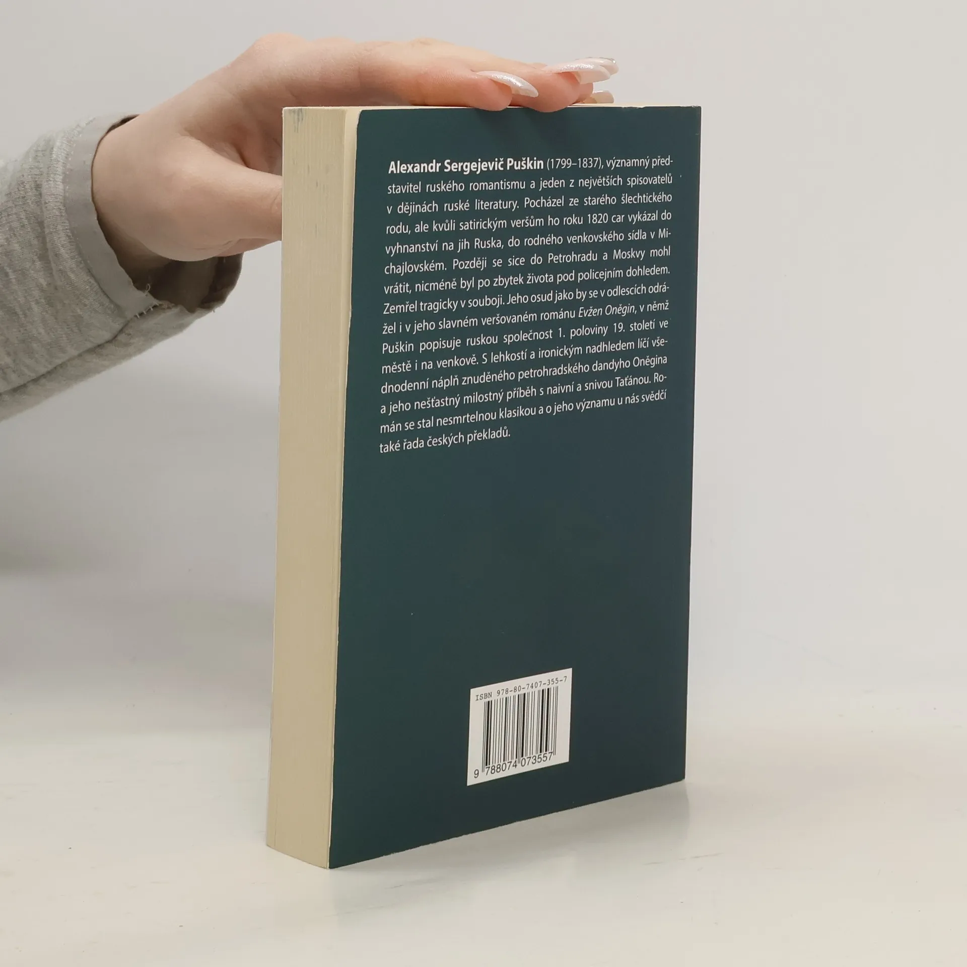 Puškin ve svém slavném veršovaném románu popisuje ruskou společnost 1. poloviny 19. století ve městě i na venkově. s lehkostí a ironickým nadhledem líčí všednodenní náplň znuděného petrohradského dandyho Oněgina a jeho nešťastný milostný příběh s naivní a snivou Táňou. Román se stal nesmrtelnou klasikou světové literatury.