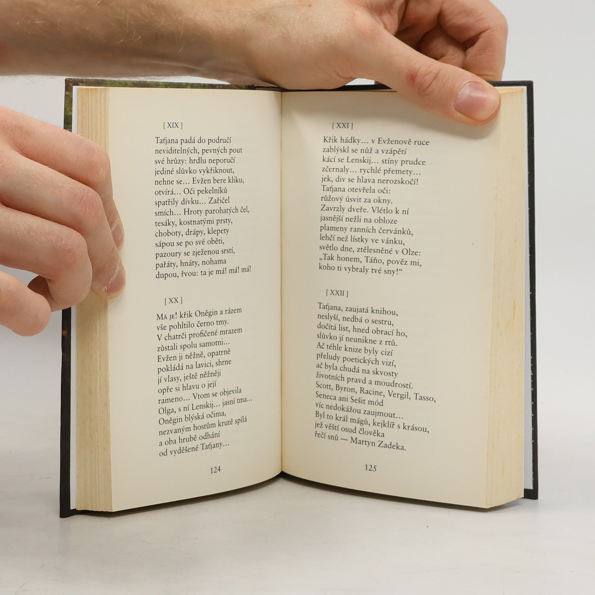 Klasické dílo světové literatury. Veršovaný román klasika ruské literatury podává obraz života a mravů vyšší a střední ruské společnosti ve městě a na venkově v 1. polovině 19. století.